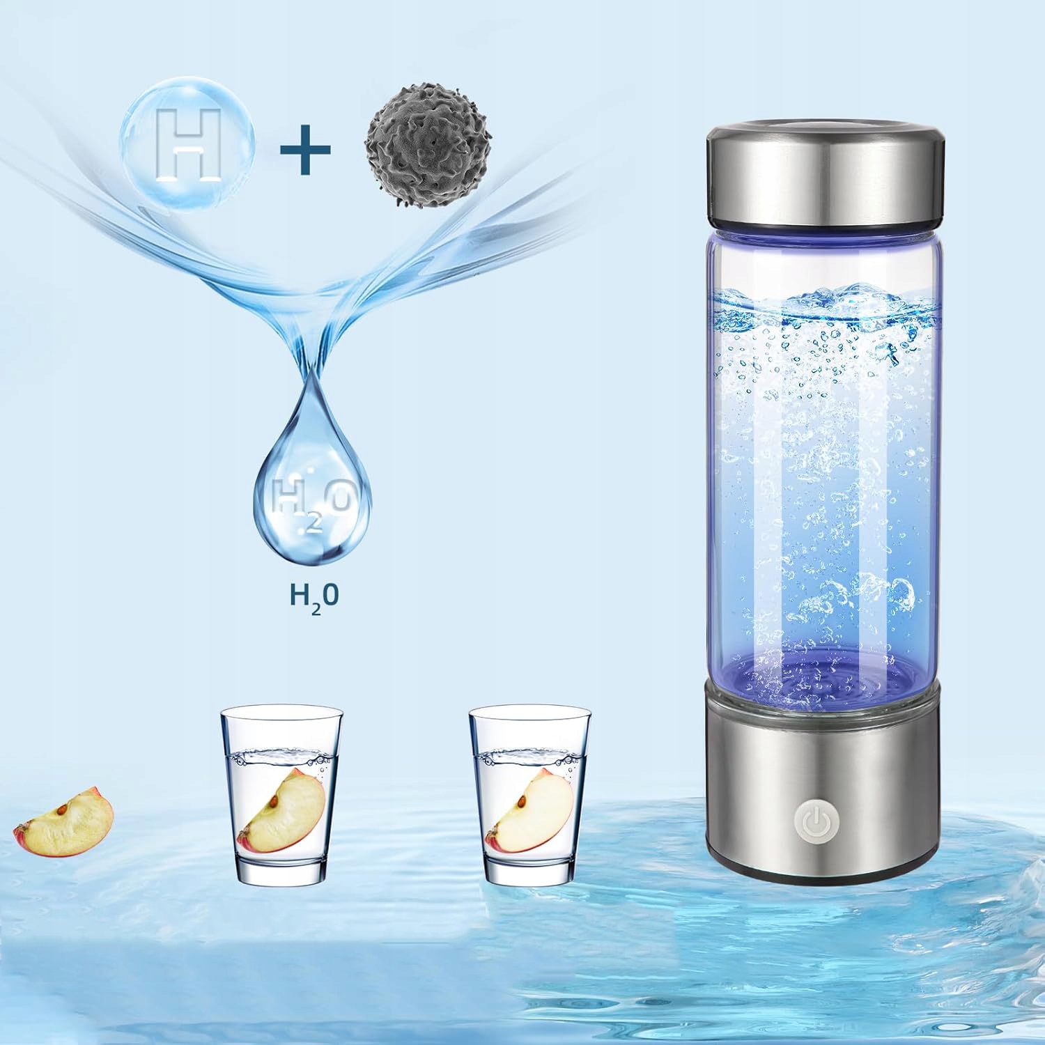 Портативна пляшка для багатої воднем води ємністю 420 мл, виготовлена з високоякісного боросилікатного скла, заряджається через USB. Електроліз виробляє високу концентрацію водню.