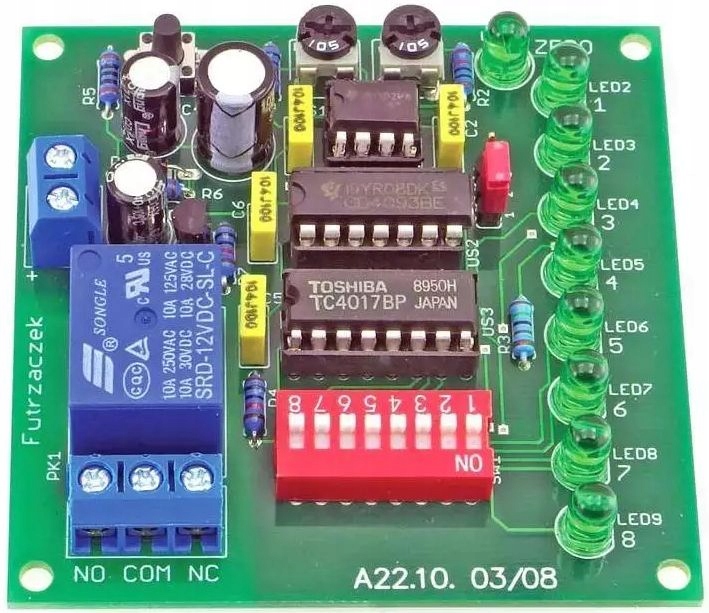 Система замикає та розмикає контакти реле задану кількість разів. Користувач може вибрати, скільки таких імпульсів генерувати – від одного до восьми. Тривалість імпульсу та інтервали між ними можна регулювати за допомогою потенціометрів.