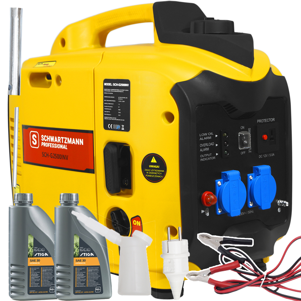Генератор інверторний ⭐✔️⭐ SCHWARTZMANN SCH-G2500inv ⭐✔️⭐ використовується для вироблення електроенергії в складних умовах (на будівництві, в будинки, заклади громадського харчування тощо).