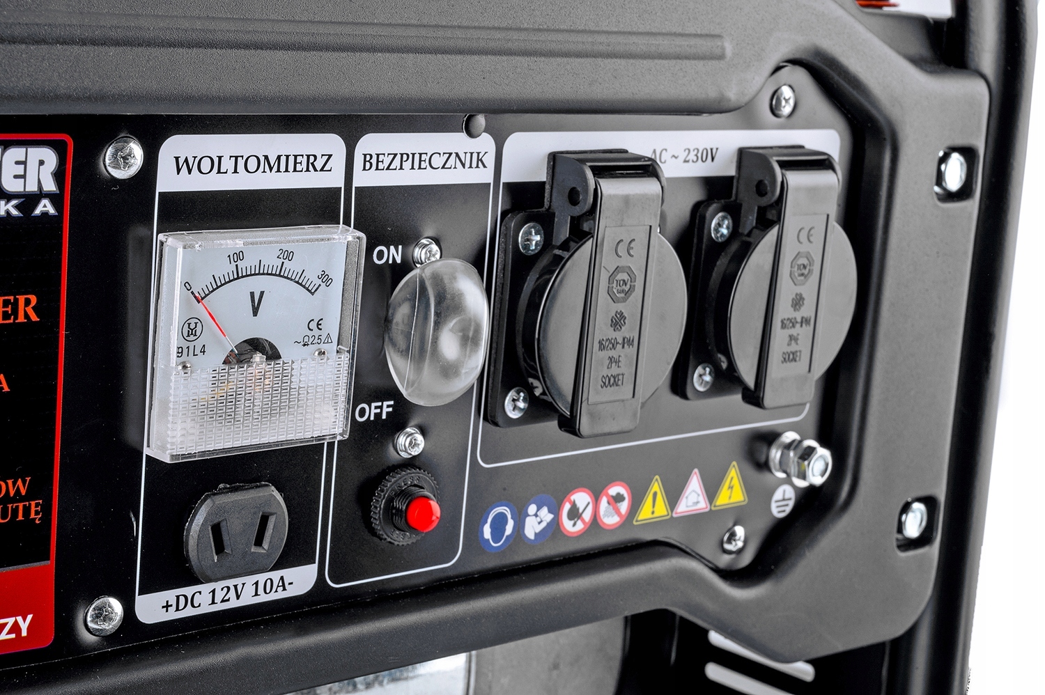 ⭐ Оснащений вольтметром і запобіжниками. Пристрій оснащено датчиком рівня масла, який автоматично вимикає двигун, якщо рівень масла занадто низький.