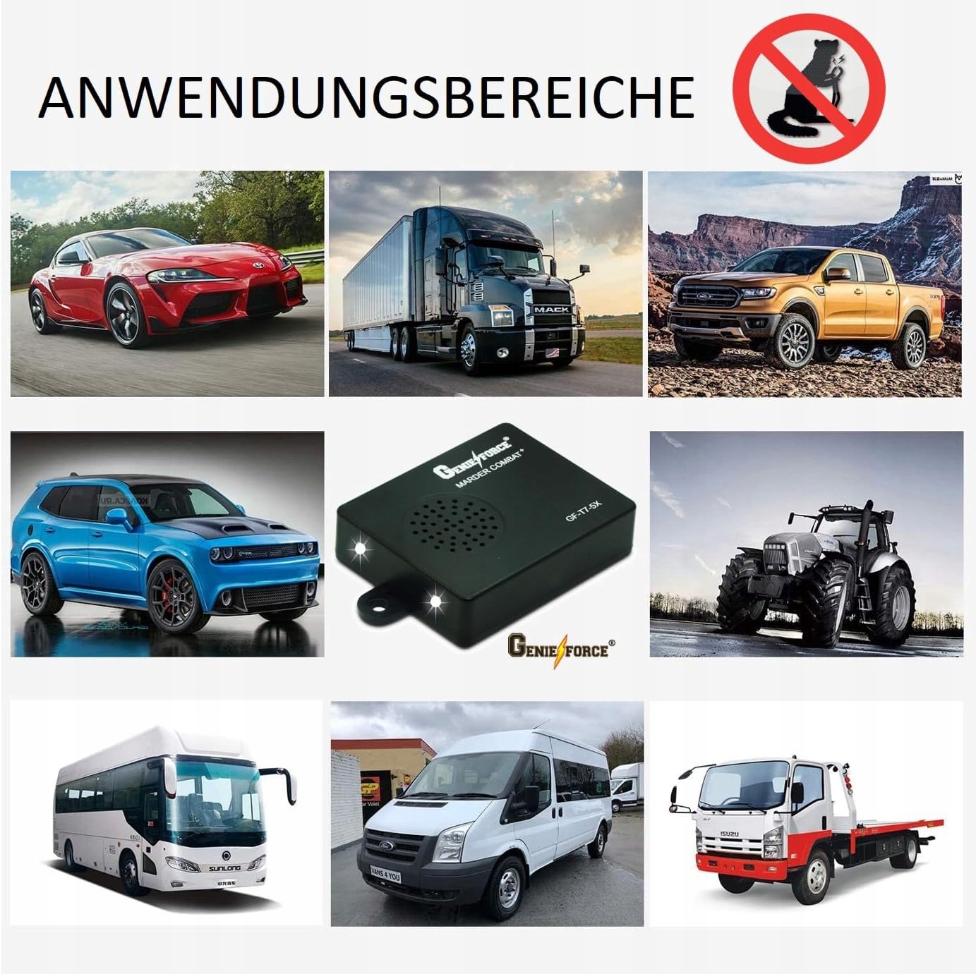 - Завдяки пристрою, що відштовхує бойовий генофорс Marten Genoforce+ Ви будете тримати небажаних гризунів на відстані. Завдяки високій частково -неповнолітній звук для високочастотного Мартену, пристрій потрапляє на Мартен, щоб втекти. Захист транспортного засобу від пошкоджених кабелів запалювання, гальмівних кабелів та інших гумових елементів проти Мартена укусу. Пристрій споживає менше енергії, ніж годинник у машині! Легка збірка Він захищає ваш транспортний засіб від пошкоджених кабелів запалювання, гальмівних кабелів та інших гумових елементів проти Miebars. Мартен їх сприймають як надзвичайно обтяжливі, і тому уникають їх якомога далі. Пристрій встановлений у моторному відділенні.