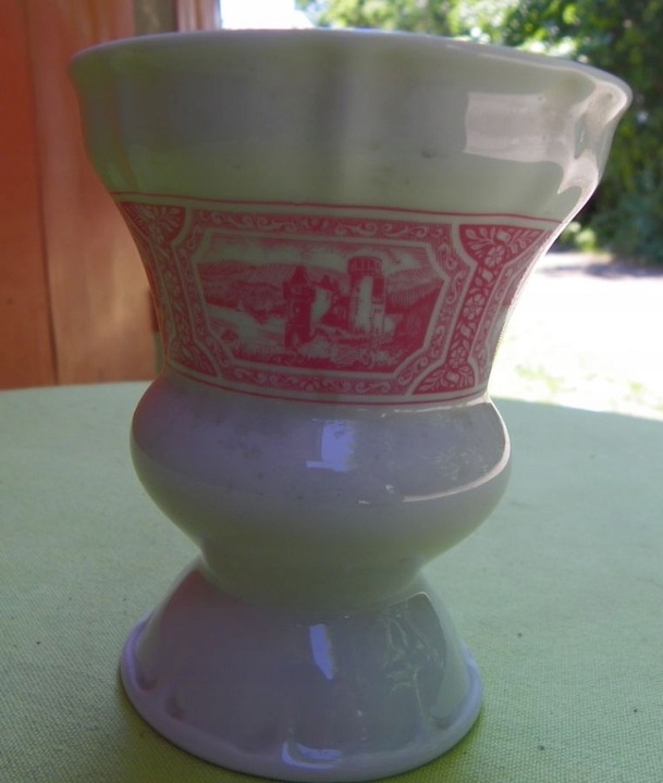 Цікавий, цікавий порцеляновий пам'ятний та політичний Кубок. Виставка виготовлялася з дуже високоякісної порцеляни в слоновій кістці. У чашці є цікава цікава форма та форма. Вгорі він був додатково прикрашений цікавими прикрасами. У центральній частині є цікавий квітковий природний орнамент. Всередині цього орнаментації, з одного боку, був розміщений гірський пейзаж разом із замком, а з іншого, текст, який посилається на те, який випадок був створений. Підписана чашка, підпис, видно на знімках. Я рекомендую це для всіх.