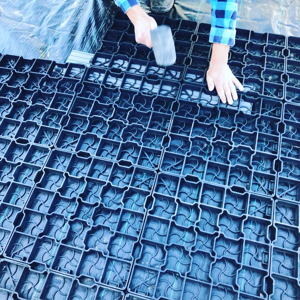 - Заповнені решітки можна знову вібрувати за допомогою ущільнювача з гумовою прокладкою, завдяки чому заповнювач буде рівномірно розподілений.