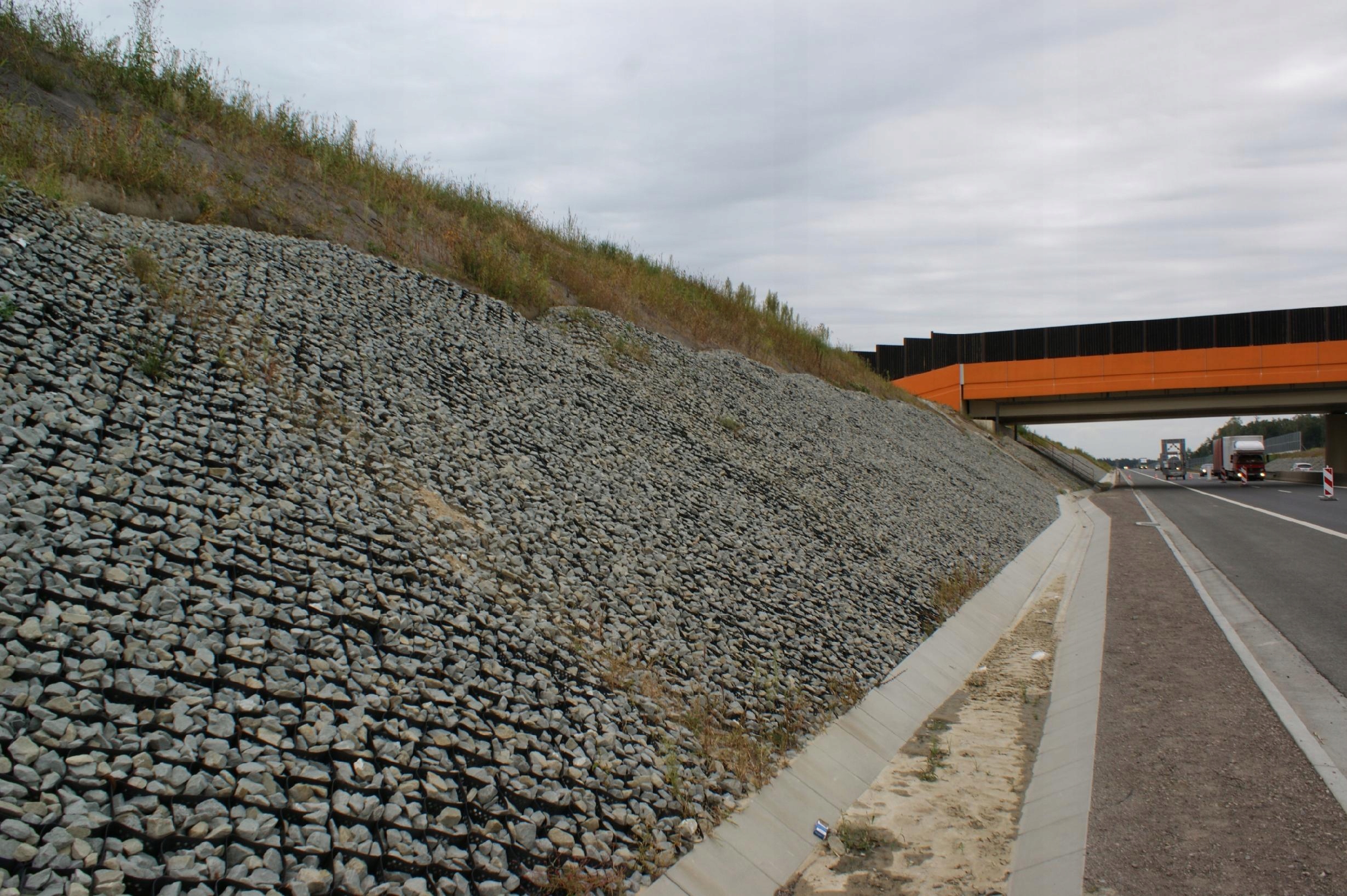Заповнювач, укладений в окремі комірки комірчастої георешітки та ущільнений до відповідної швидкості ущільнення, сприяє багаторазовому збільшенню несучої здатності основи.