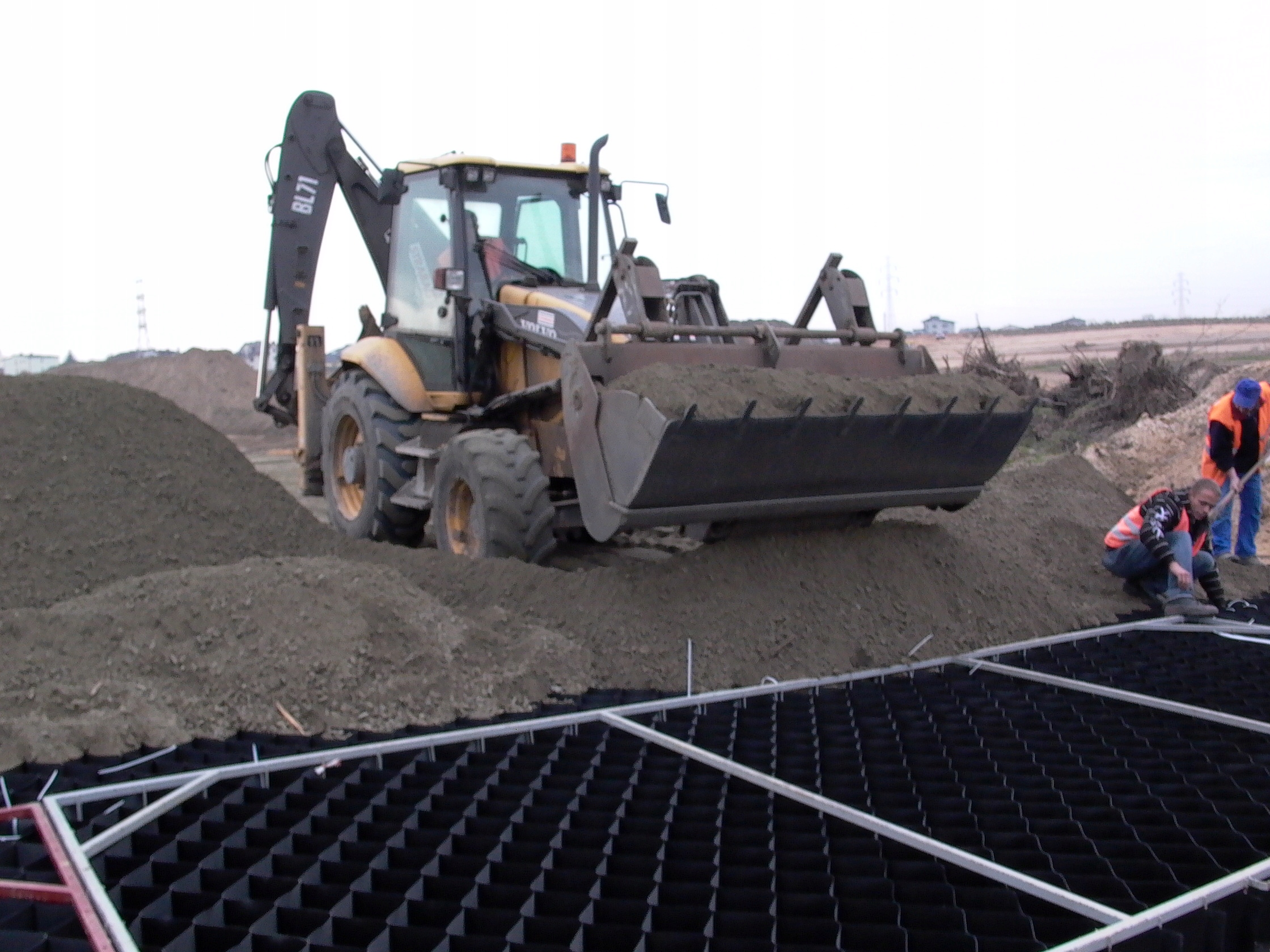 Другий з основних застосувань- це зміцнення основи дороги або будівництва верхнього шару дороги або парковки- в даному випадку утримання вільної води є величезною перевагою. 4 Він працює, посилюючи шар тягаря, укладений у клітини геосиака, що дозволяє краще переносити вертикальні навантаження. Як результат, значно зменшує розмір фундаменту та зменшення інвестиційних витрат.