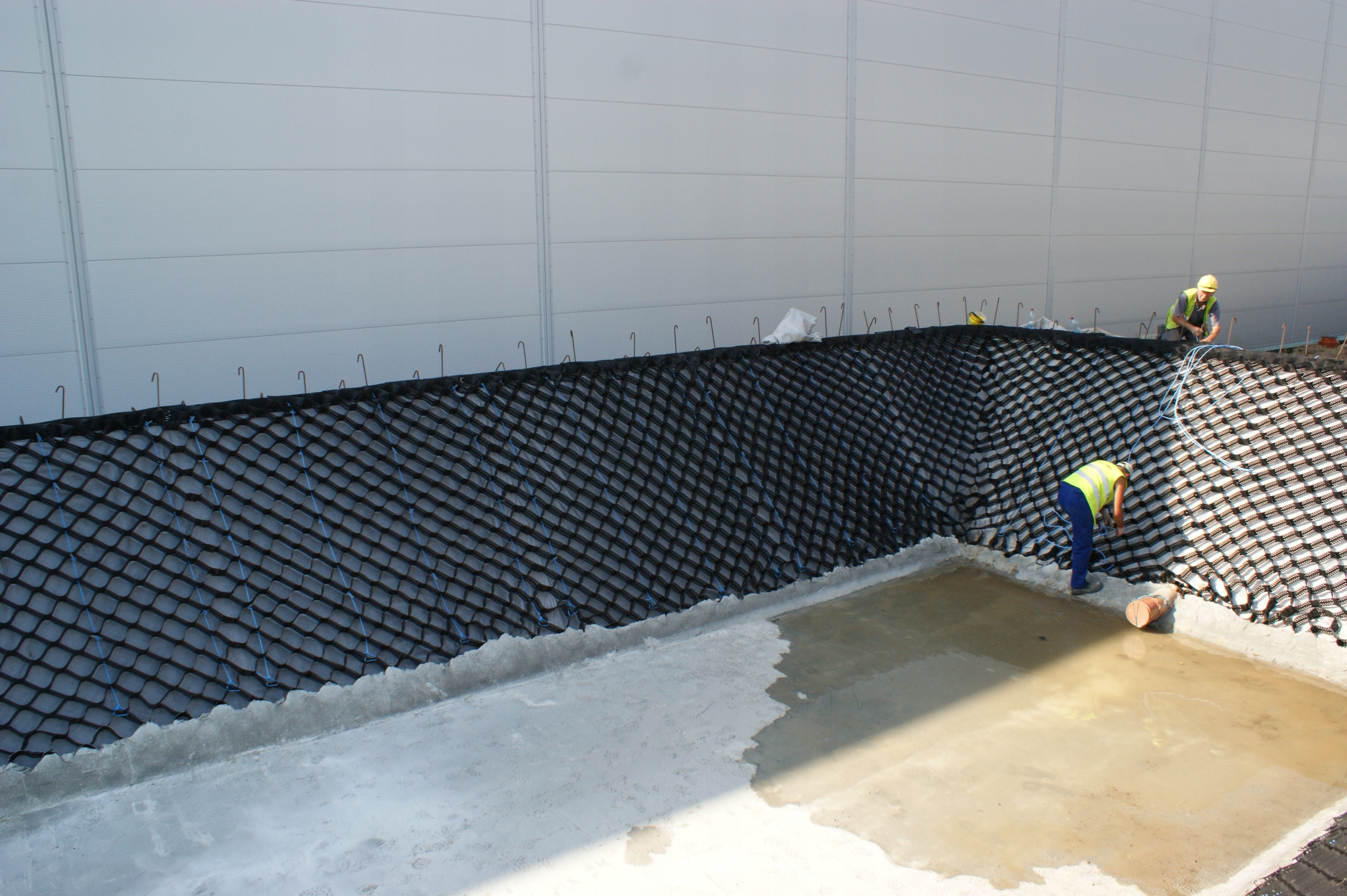 Наш геозиатор як зміцнення резервуарів для води або водотоків. - Тут пожежне резервуар у Ніеполісі, під час роботи