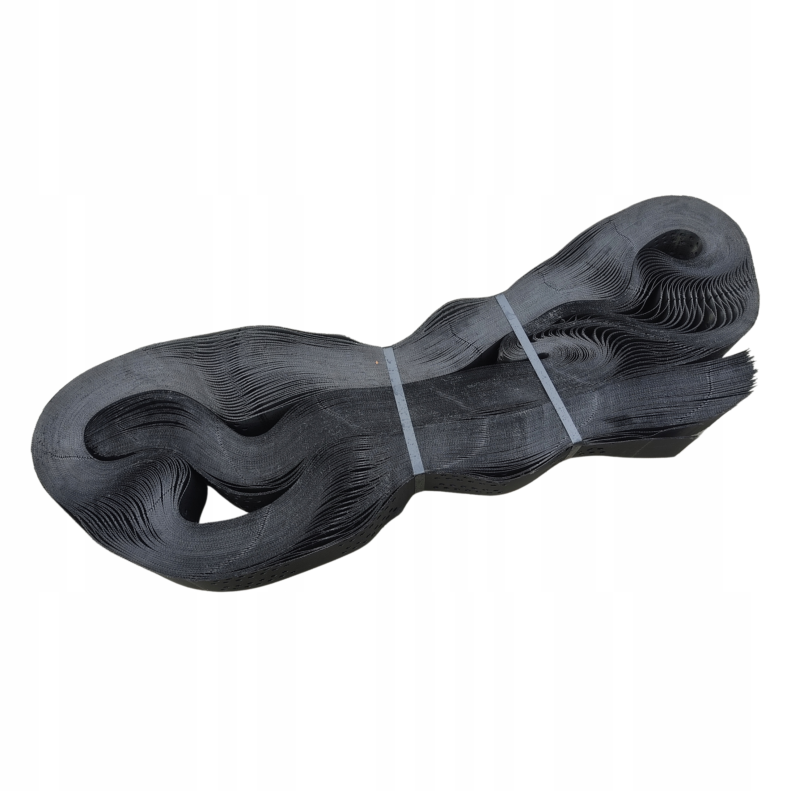 виготовлений з поліетиленових стрічок високої щільності, з'єднаних поклонінням, перпендикулярним до осі стрічки. Він виробляється з сировини, стійкої до факторів біологічного розкладу.