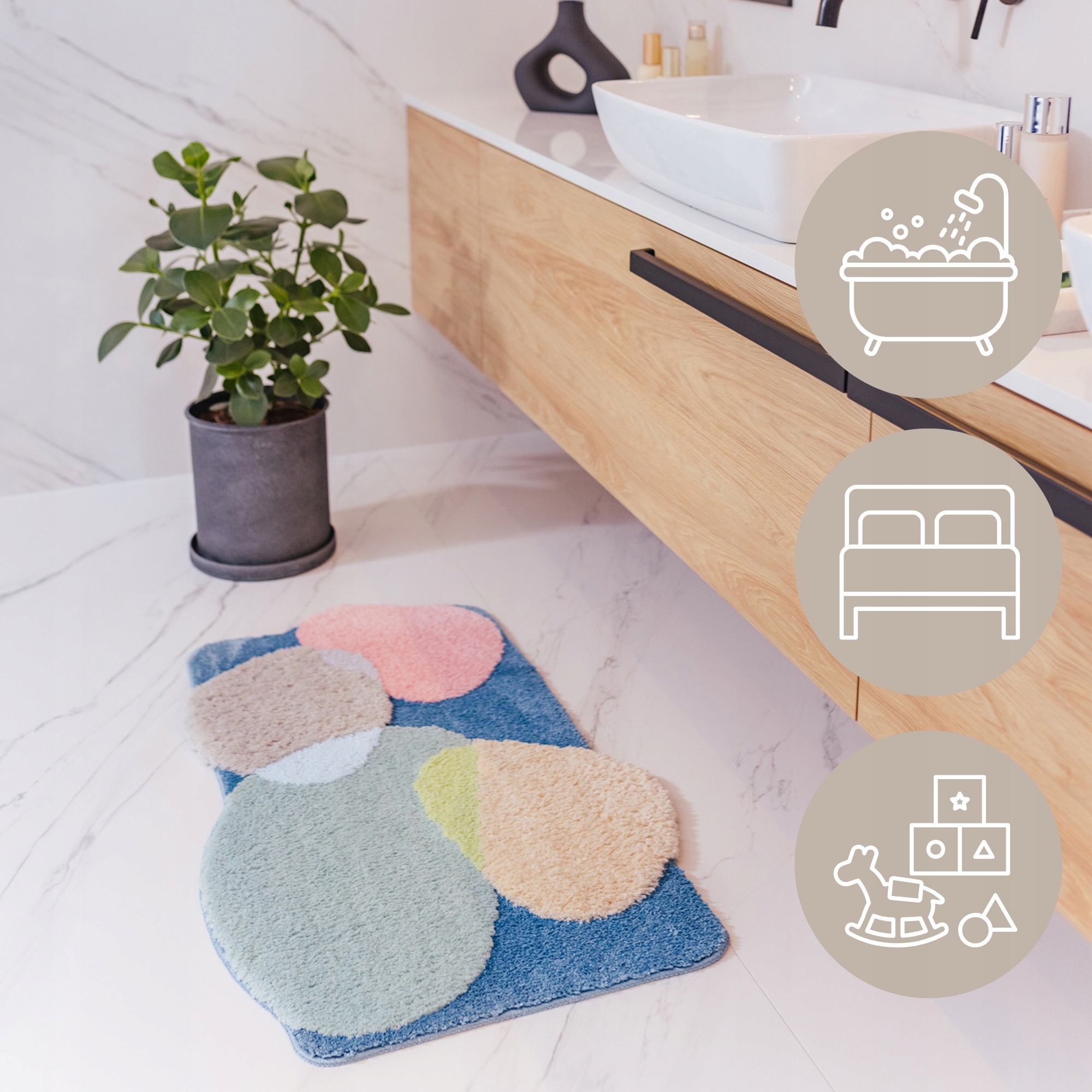 Так, ви також можете безпечно поставити його у ванній кімнаті. Він стійкий до вологи, швидко сохне і має неслизьке дно, тому залишається на місці навіть на гладкій плитці