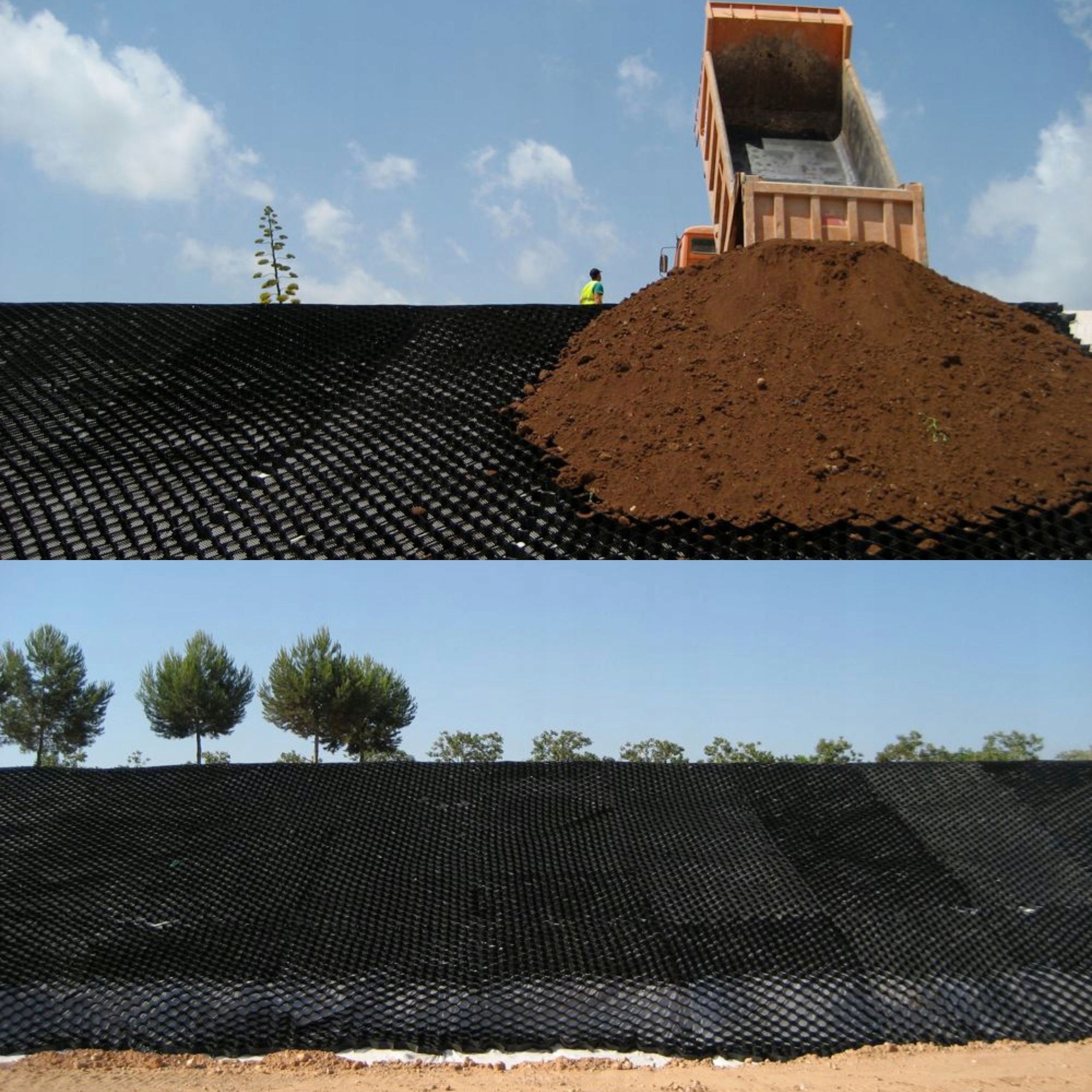 Однією з головних переваг нашої стільникової георешітки є можливість їздити по ній одразу після покриття матеріалом. Це значно полегшує та пришвидшує встановлення, що призводить до економії часу та коштів.