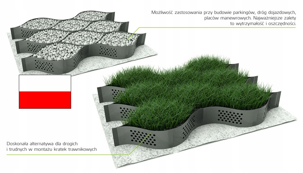 Наша комірчаста георешітка виробляється на 100% у Польщі. Купуючи у нас, ви підтримуєте польських підприємців.
