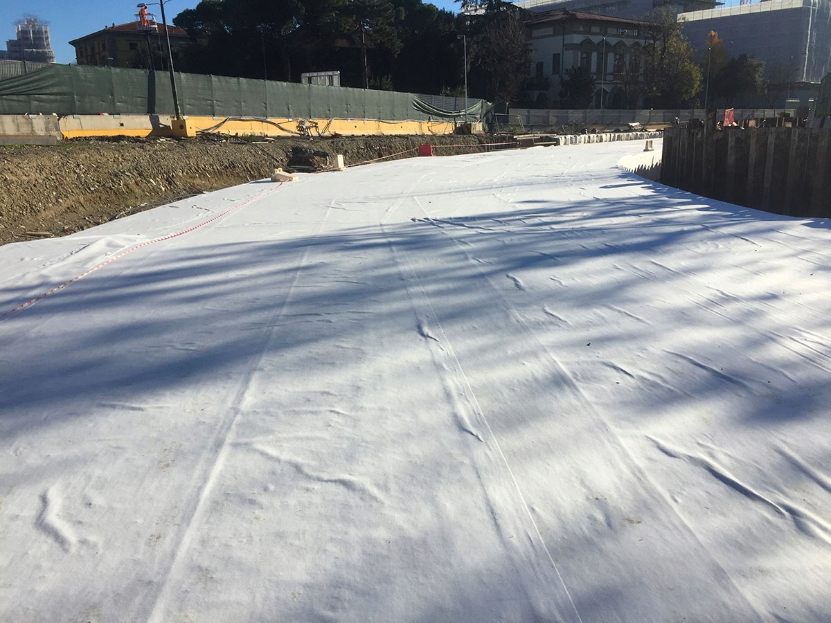 Геотекстиль - це плоский геосинтет з поліефірних волокон (PES), з'єднаних механічно розмахуванням, пронизливим або термічно внаслідок зварювання. Поліестерні волокна характеризуються відносно високою міцністю і високою температурою плавлення - продукт рекомендується для контакту з бітумінозною масою. Додатковою перевагою є висока стійкість до світла (УФ -промені). Геотекстиль не містить токсичних сполук і нешкідливий для людини та природного середовища. Застосування: