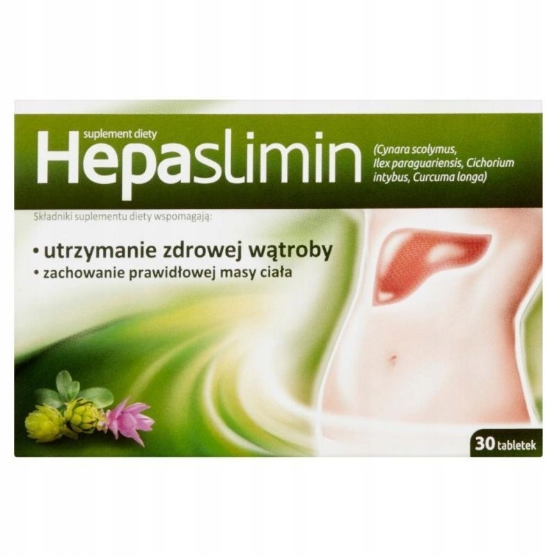 Гепаслімін - це дієтична добавка в таблетках, призначених для дорослих. Він містить композицію з 4 овочевих підйомників: з листя артишоку, з листя Парагвайського Холлі, від кореня цикорію та від довгих часів котла. Склад препарату додатково збагачувався L-Aspartate L-орнітином та холіном.