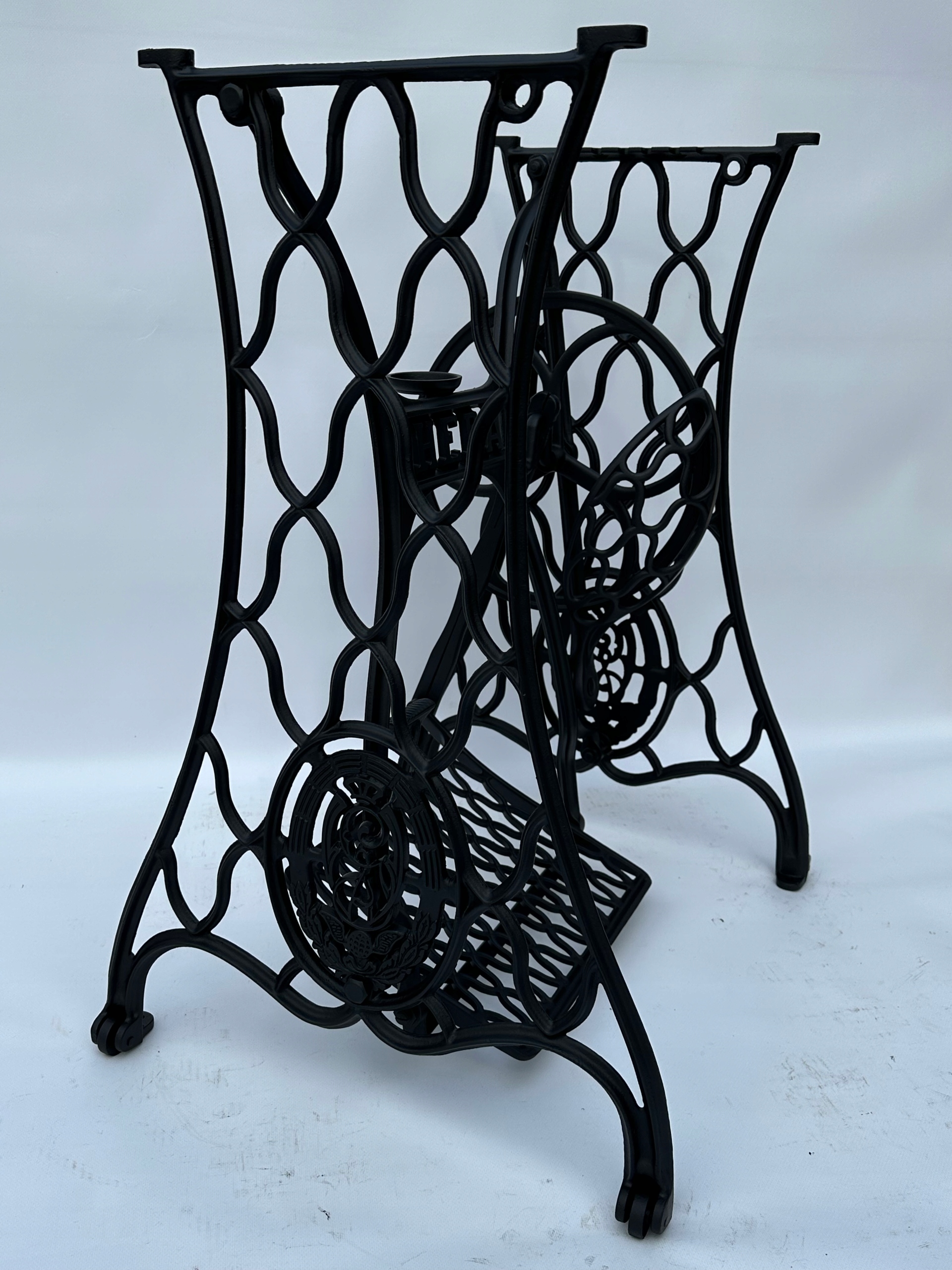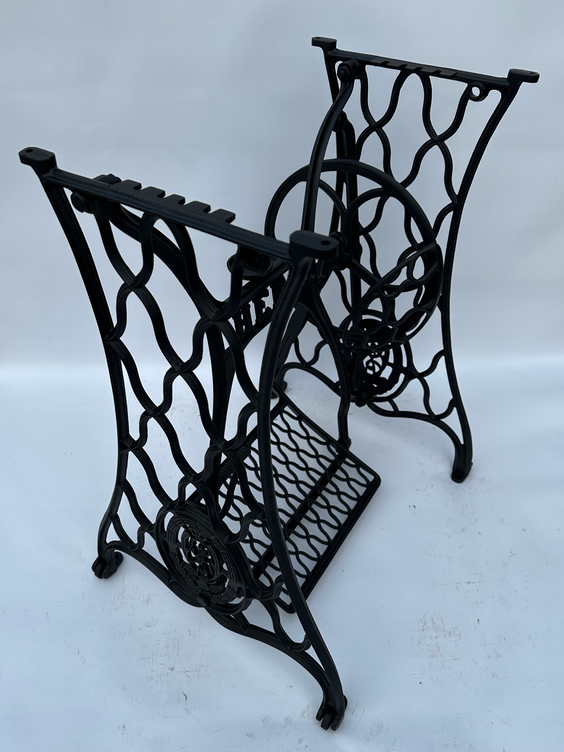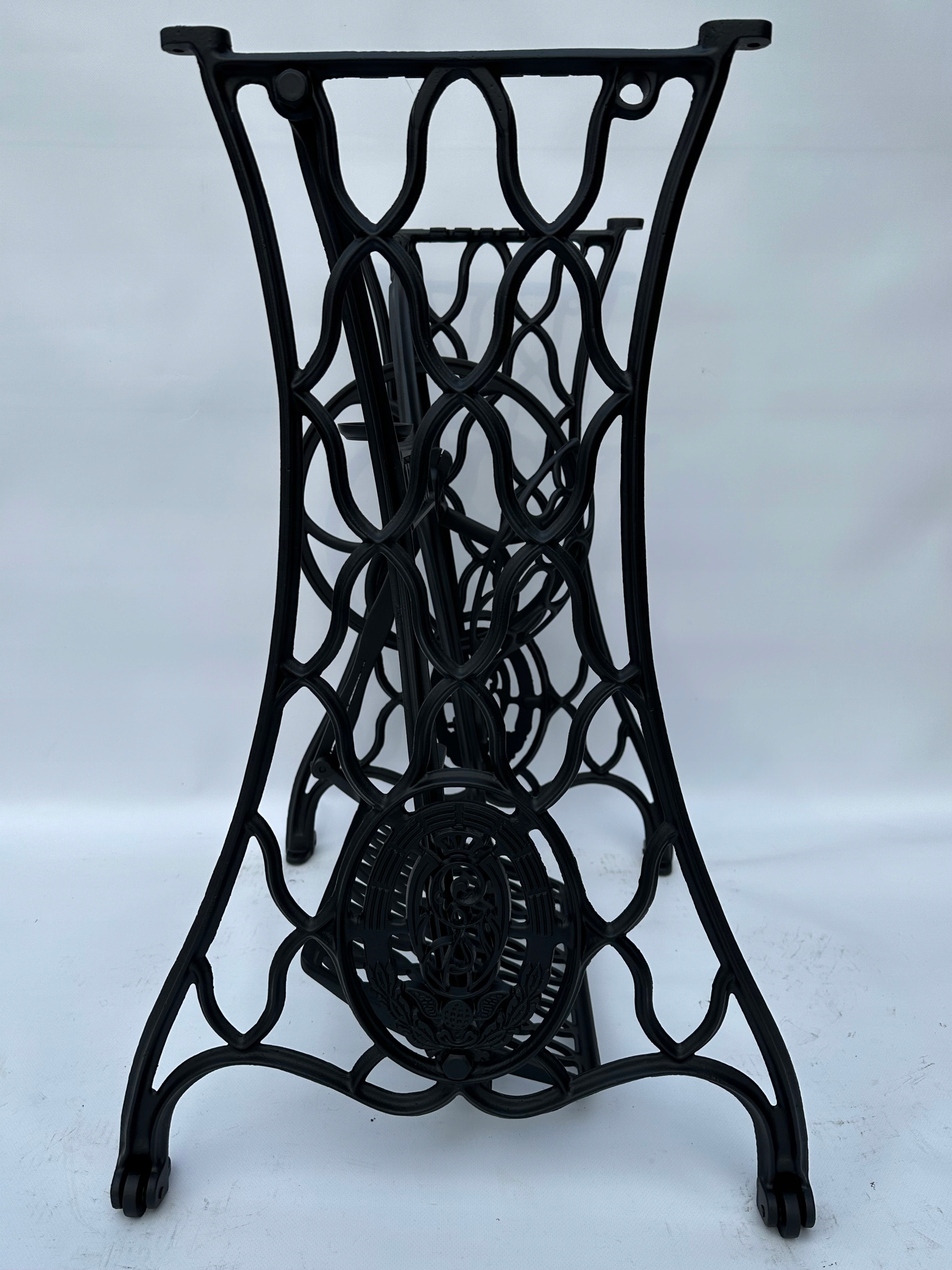 Предмет продажу стара чавунна основа для швейної машини HERA. Дуже гарний візерунок, менш поширений. Він має всі 4 колеса внизу.