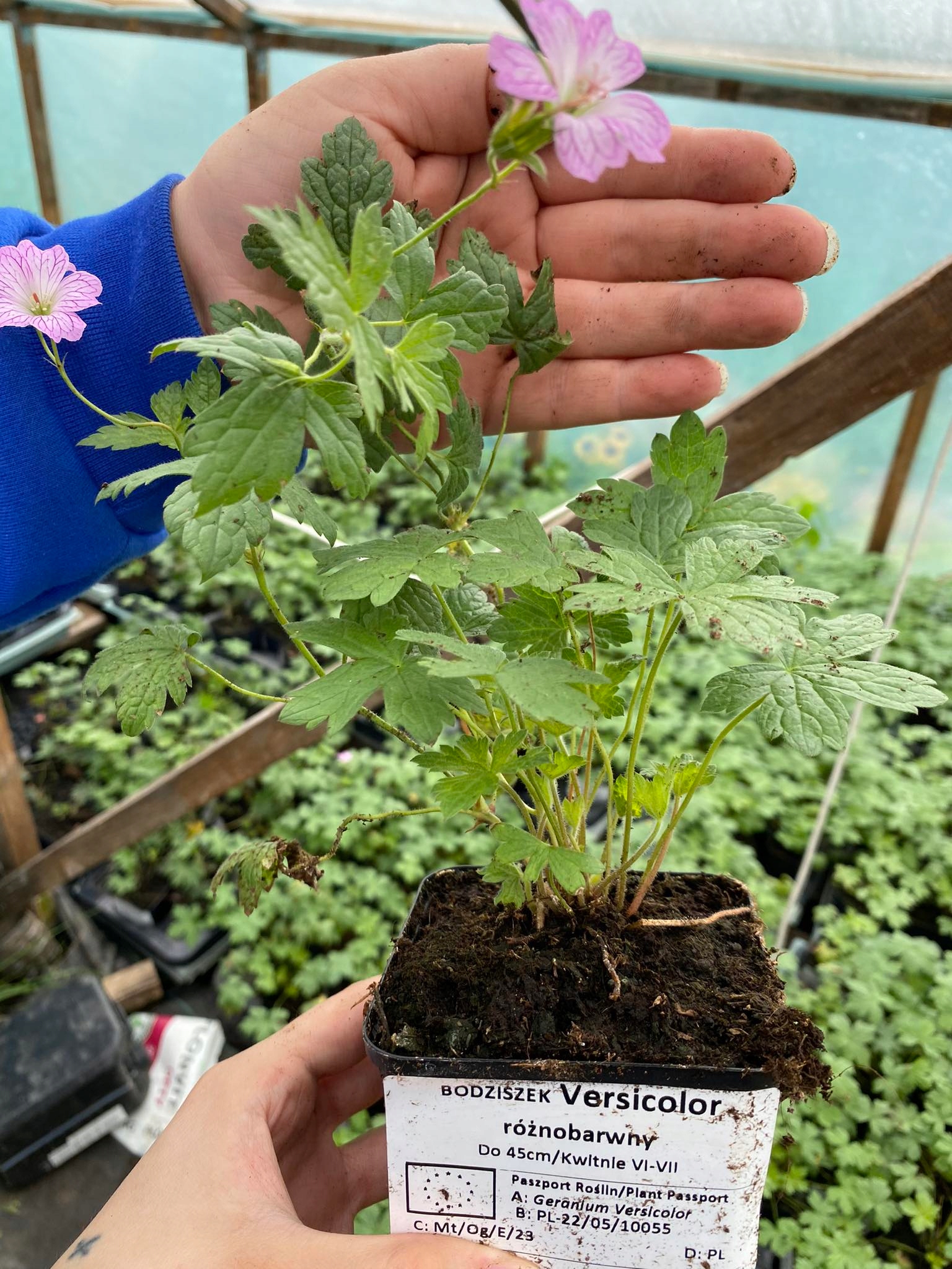 ToTwojOgrod запрошує придбати саджанці герані GERANIUM VERSICOLOR строкатої з білими, ніжно-рожевими квітками з чітким фіолетовим жилкуванням.