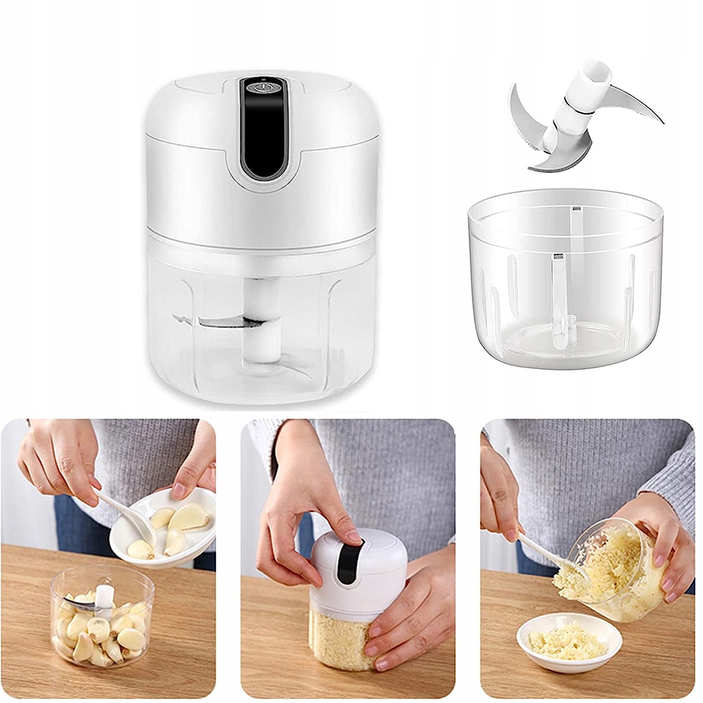 4 Наш електричний подрібнювач має дві миски (250 мл і 100 мл), в яких можна нарізати горіхи, імбир, часник, цибулю та інші овочі. 4 Двигун 37 W Mini Chopper забезпечує відмінну продуктивність. 4 Електричний подрібнювач може бути повністю заряджений протягом 3-4 годин. 4 Міні -електричний подрібнювач має 3 лопаті на мисці 250 мл і 2 лопатки для 100 мл чаші. 4