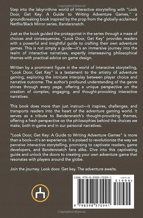 вас зафіксовані хитромудрими головоломками, розгубленими розповідями та захоплюючими світами пригодницьких ігор? Ви коли -небудь мріяли створити власний цифровий розповідь Лабіринт? Заняття у світ інтерактивних розповідей з "Подивись двері, Отримайте ключ: Посібник з написання пригодницьких ігор" та розблокуйте двері до своєї подорожі для розвитку гри! У цьому вичерпному посібнику ви переходите багату історію пригодницьких ігор, від перших текстових досліджень до епохи графічної точки та натискання пригод. Ви дізнаєтесь, що випускання фундаменту дизайну ігор, таких як створення занурених світів, незабутні персонажі розвитку та розробка захоплюючих головоломок. Відкрийте для себе мистецтво розгалужених розповідей та вибору, керованих гравцями, які забезпечують унікальний досвід кожного разу, коли грає. Вивчіть захоплюючі сфери мета-пориви, рекурсивне розповіді та майстерний баланс непередбачуваності та агентства гравців. Заняття в тематичні дослідження класичних ігор та вчіться з успіхів та невдач галузі. "Подивись двері, отримайте ключ" виходить за рамки просто механіки, вступаючи в глибокий контекст створення пригодницьких ігор. Вивчіть психологічні та етичні наслідки інтерактивних наративів та замислюйтеся над майбутнім жанром у світлі нових технологій. Незалежно від того, чи ви дизайнер ігор, що починають, досвідчений розробник, який прагне розігнатись у пригодницьких іграх, або просто шанувальник інтерактивної вигадки, яка бажає глибокого розуміння цієї форми мистецтва, "Подивись двері, Отримайте ключ" - це ваш скарб Трова розуміння, практичне Поради та натхнення. Прийміть наміру технології та розповіді, і хто знає -ви можете просто написати наступну новаторську пригодницьку гру!
