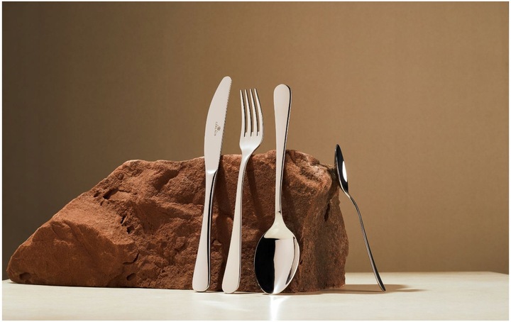 Столові прибори Flow відрізняє проста, ефектна лінія, характерна для сучасного та мінімалістичного стилю. Набір чудово підійде не тільки для повсякденної трапези, але й чудово підійде під час святкової вечері, приготованої для батьків чи друзів.