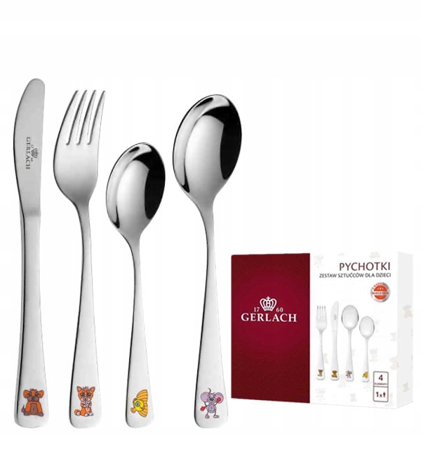 GERLACH ПИХОТЛИВІ СТОЛОВІ ПРИЛАДИ ДЛЯ ДІТЕЙ 4 ЕЛ В КОРОБЦІ / ГЛЯНЕЦЬ