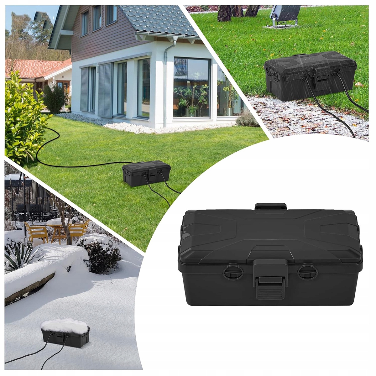 Ця водонепроникна кабельна коробка підходить для широкого спектру застосувань усередині та поза приміщеннями, як-от садові електроінструменти, освітлення ялинки, озеленення, насоси для басейнів, фонтани, ставки, обігрівачі патіо, кондиціонери, камери спостереження тощо.