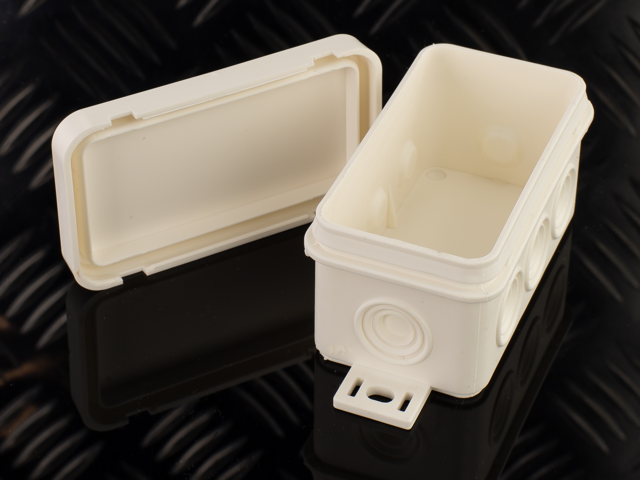 Коробка накладна гнучка білогорозміру 45x80x41 мм. Характеризується ступенем захисту IP54, що забезпечує захист від проникнення пилу і бризок води з будь-якого боку.