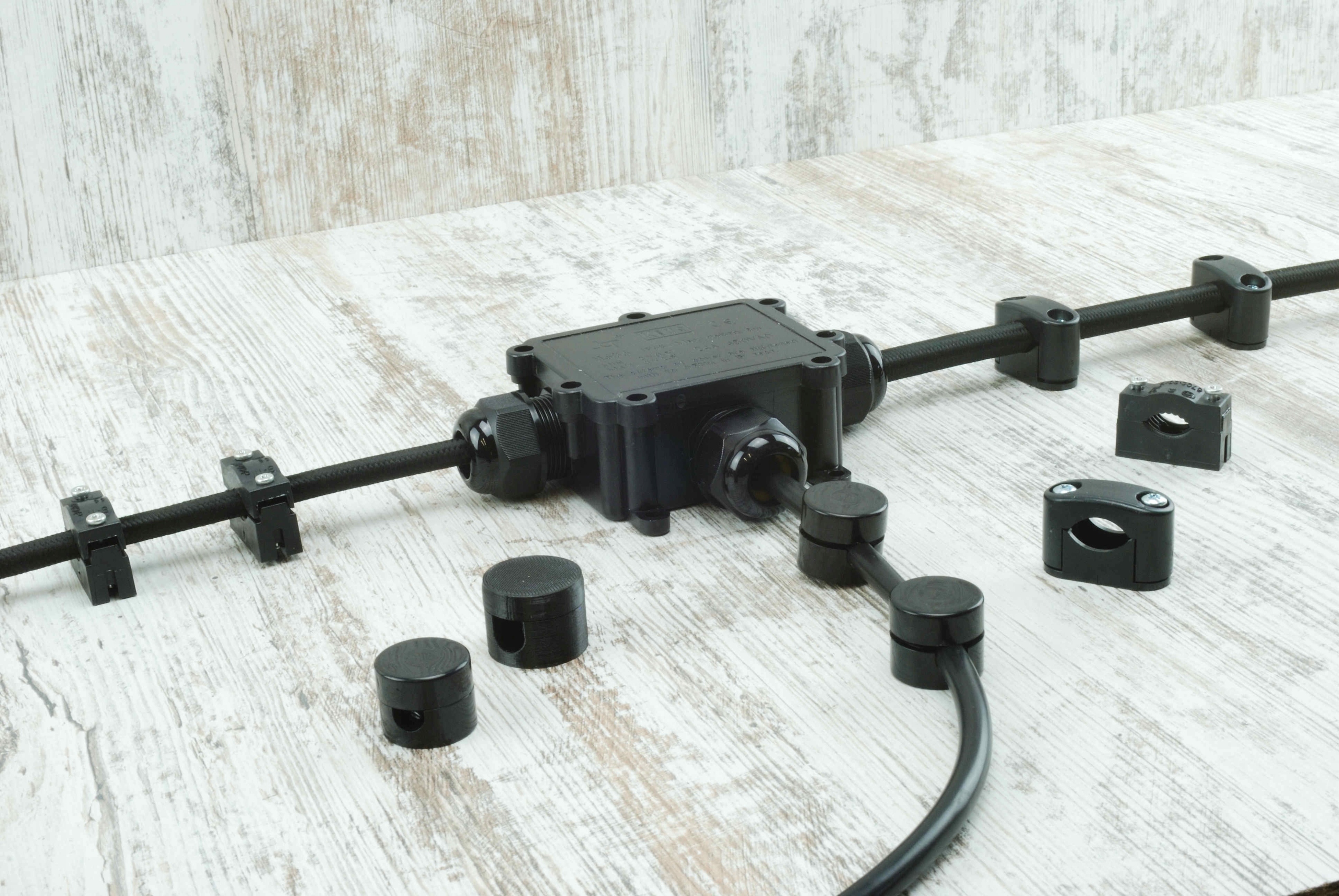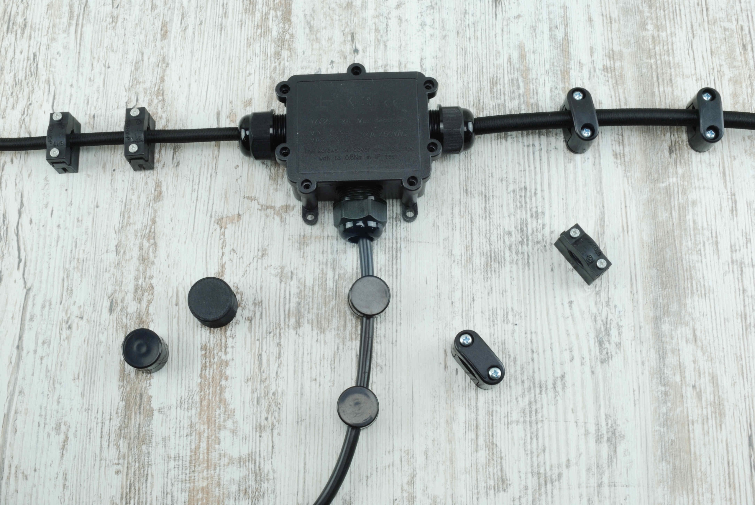 Корпус коробки складається з двох елементів, з’єднаних гвинтами, і захисту від кабелю. розрив забезпечується затискною сальником.