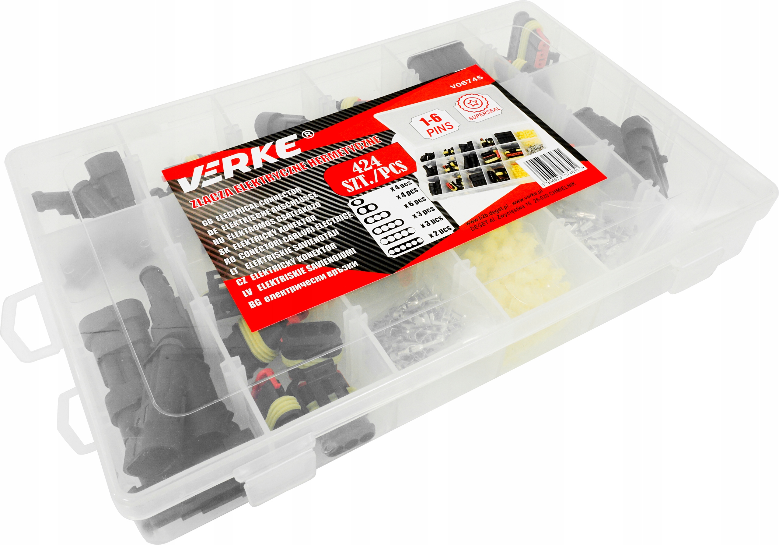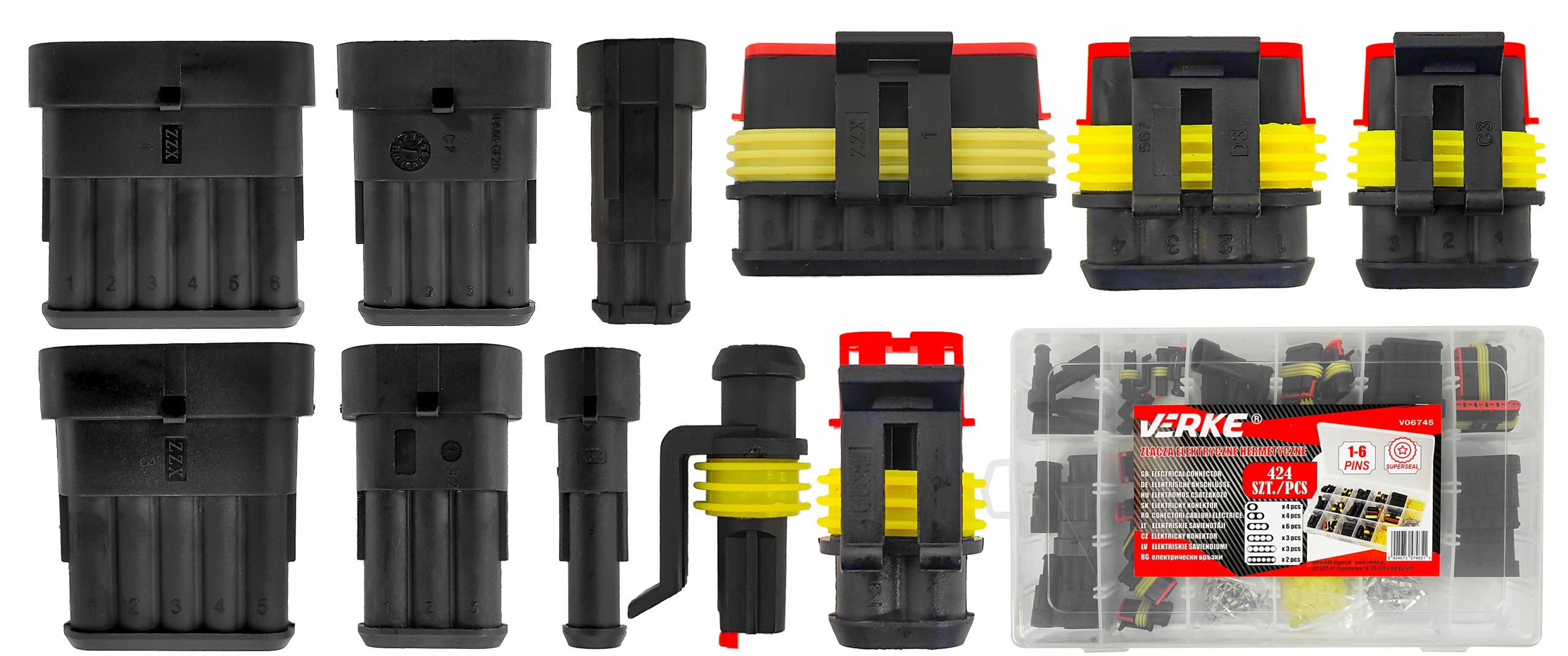 Набір із 424 герметичних конекторів у 6 розмірах, що відповідають найпопулярнішим діаметрам електричних кабелів. Використовується в автомобільній промисловості, в тому числі: для датчиків і пристроїв в автомобілях. Вони забезпечують дуже хорошу ізоляцію та герметичність.