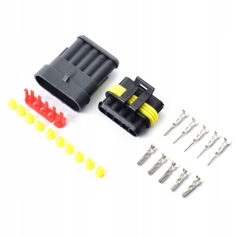 5-контактний роз'єм Superseal (вилка - гніздо). Вони використовуються в автомобільній промисловості в дуже широкому діапазоні. Цей тип з’єднувачів має гумові ущільнення, що робить їх стійкими до різних типів рідин і дуже герметичними.