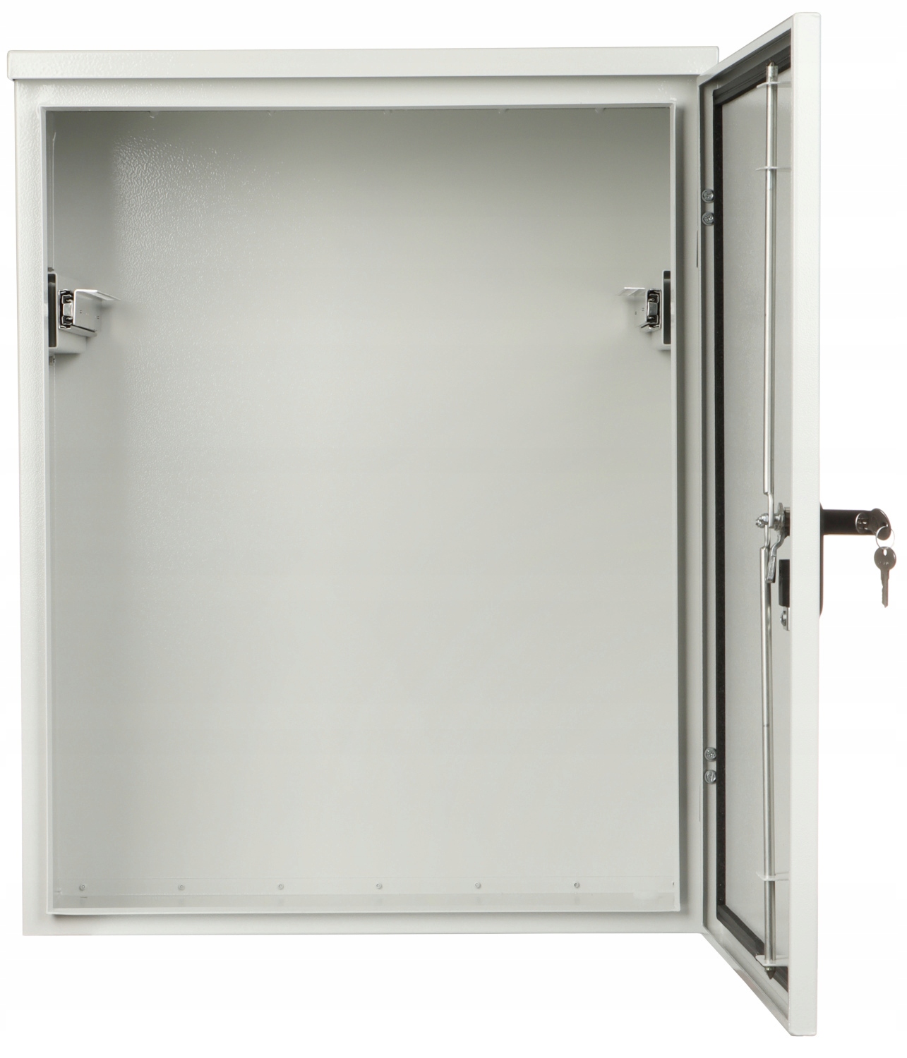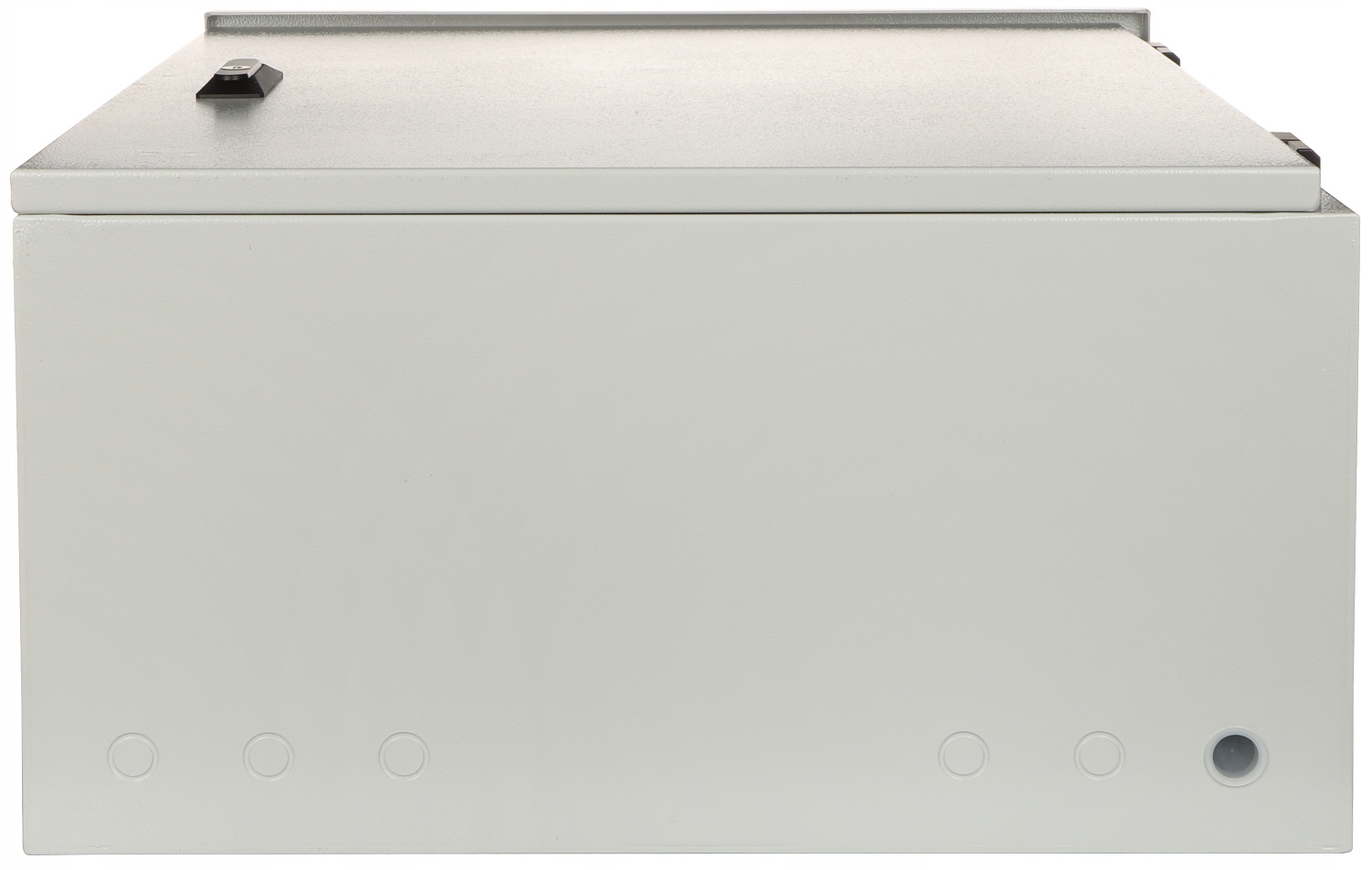2 шт. Рейки стійки висувні на направляючі для кріплення пристроїв: Стійка 19", 5 U (54 см знизу, 20 см зверху) Отвори для кабелів знизу: Ø 16 мм - 6 шт. Двері відкриваються вправо (макс. 180°), фіксуються латунною ручкою з замком і триточковою системою замикання. Корпус адаптований для кріплення на стіні або на щоглі (за допомогою спеціального кронштейна) Клас герметичності: IP55 Антивандальний корпус (IK10)