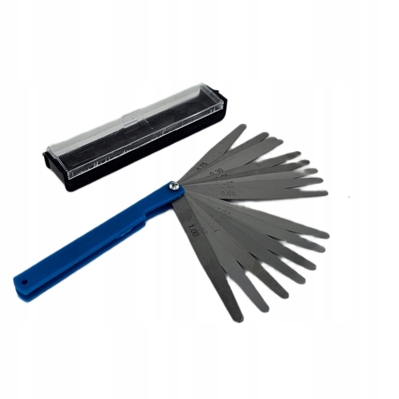 Щуп із 17 лезами розміром від 0,02 до 1 мм. Щуп необхідний для роботи з регулювання класичного запалювання з переривником і для регулювання клапана.