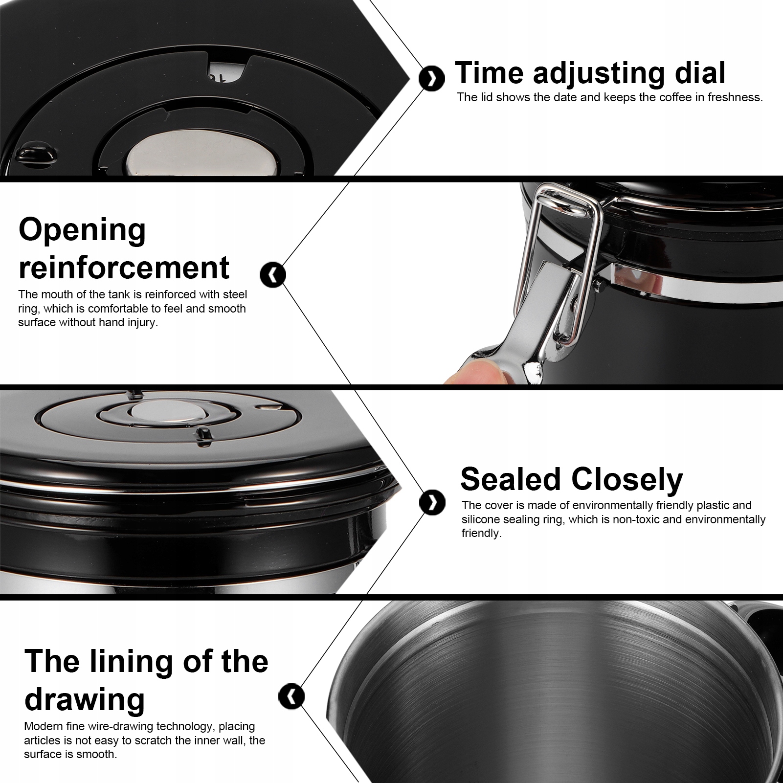 1. Дата відображається на обкладинці і встановлюється час для підтримки свіжості кави. Це нагадує, як довго залишаються кавові зерна після відкриття сумки в будь -якому місці та часу. Одноразовий вихідний клапан встановлений над тісним резервуаром, який вирішує проблему, що тісний резервуар не може бути спорожненим в один бік, може звільнити вуглекислий газ, а також вирішує проблему тривалого зберігання та пиття кави. Обкладинка виготовлена з екологічно чистого пластику з ущільнювальним кільцем, яке є нетоксичним, екологічно чистим та гігієнічним; За винятком отвору вентиляції, решта частин є герметичними. Банка банки армована сталевим кільцем, яке зручне на дотик і довговічний; Проста конструкція, елегантна і щедра, поверхня гладка і не шкодить вашій руці. Двоє -шарова посилена пряжка з нержавіючої сталі, напруга стабільна, пряжка сильна, вона може блокувати доступ кисню, а ефективність ущільнення краща.