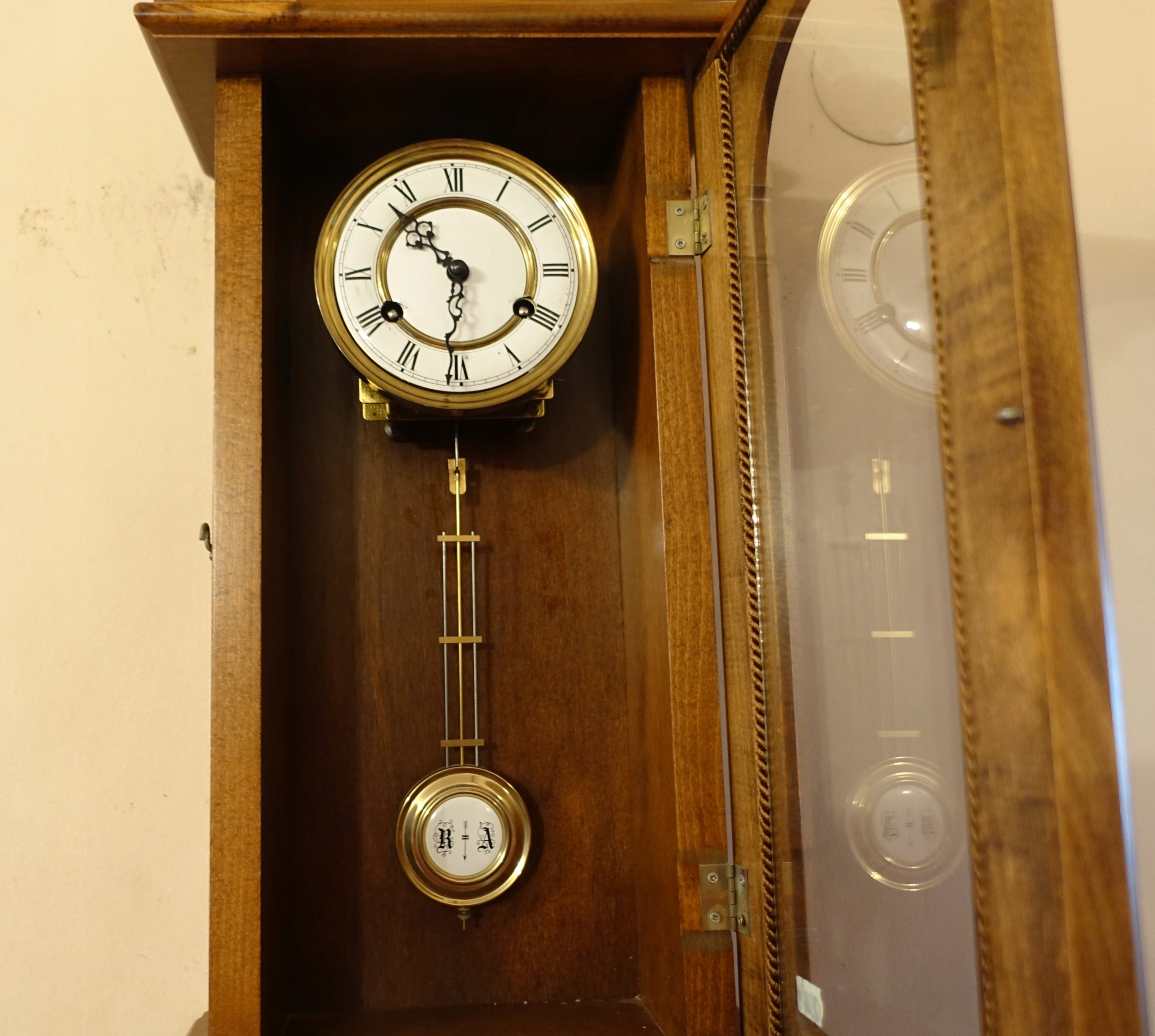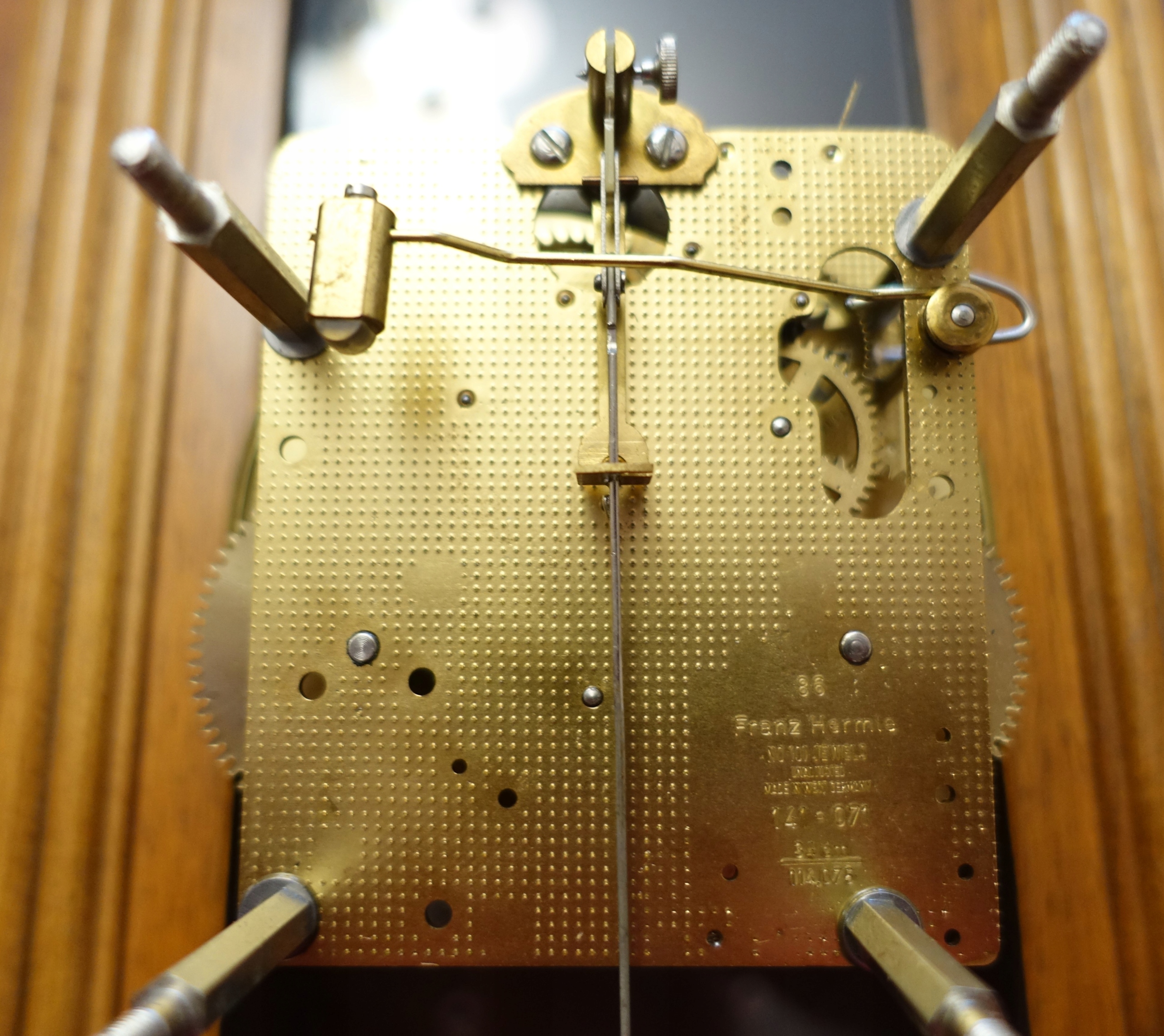 Гермле годинника добре відомого та авторитетного німецького бренду, в прекрасній еклектичній скрині. Механізм годинника функціональний, і механізм годинника наповнений повними годинами та половинами на спіралі Гонг