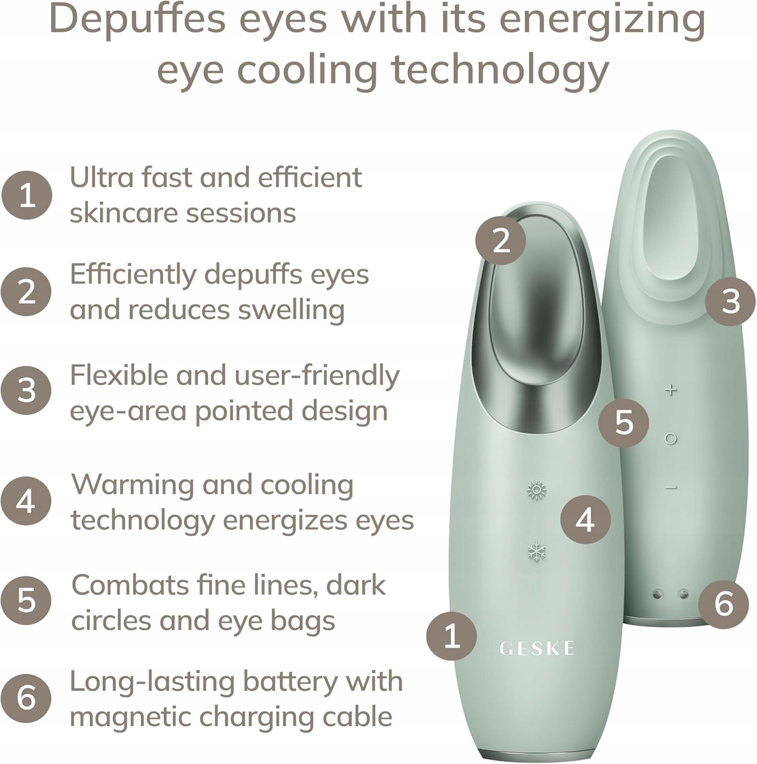 - ✅ ОБСЯГ ПОСТАВКИ: станьте частиною інновації краси номер 1 ELLE за допомогою SmartAppGuided Warm & Cool Eye Energizer | 6 в 1 з магнітним кабелем для зарядки та відеоінструкціями в додатку GESKE.