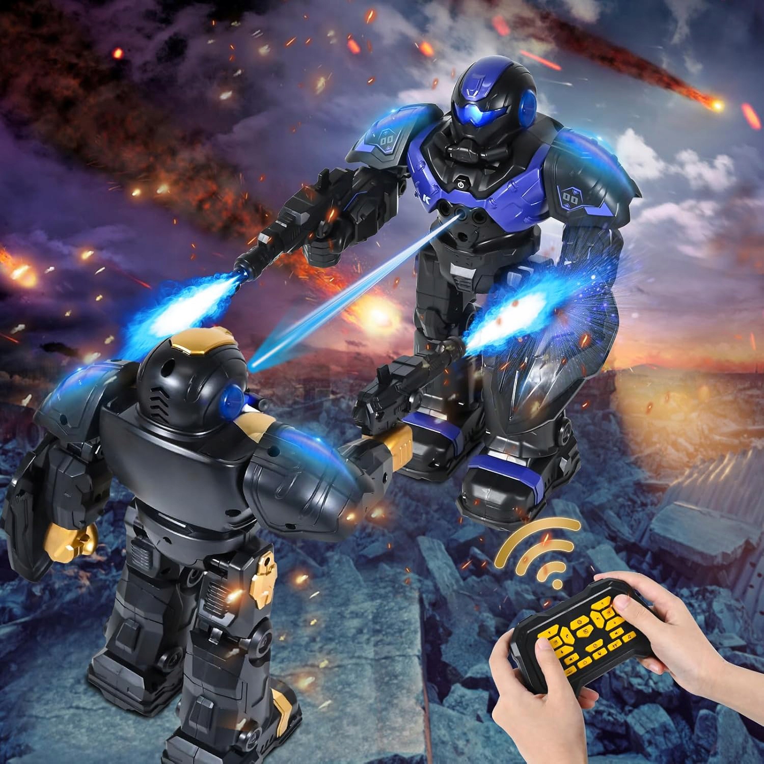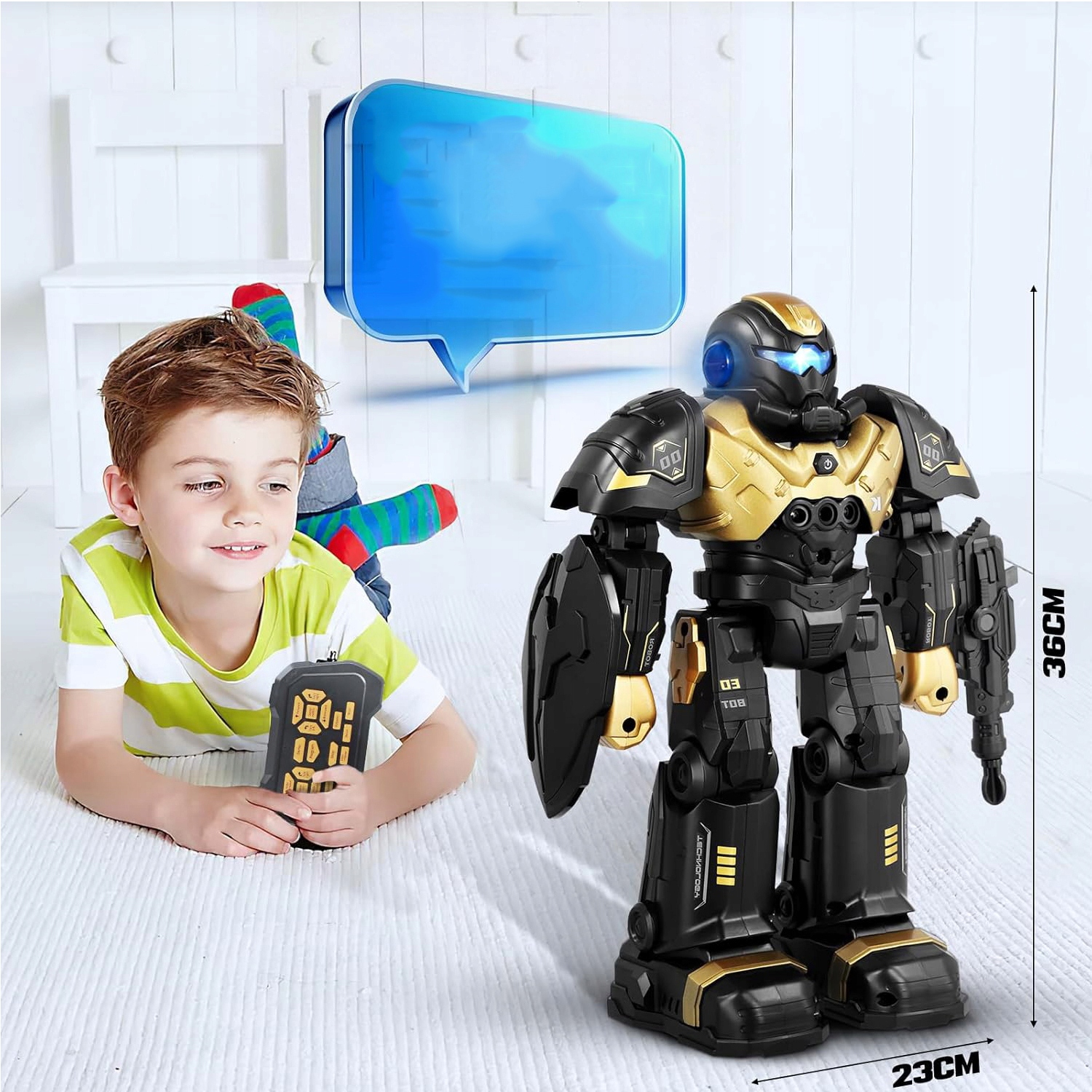 🤖Робот з дистанційним керуванням: робот із дистанційним керуванням постачається з дистанційним керуванням, щитом і пістолетом. Робот більший за інших роботів і імітує звук кулемета. Тому, коли двоє дітей купують цього робота, вони зможуть захоплююче битися! Робот також має світлодіодні очі, які дуже круті вночі, і дітям сподобається ця іграшка!🤖