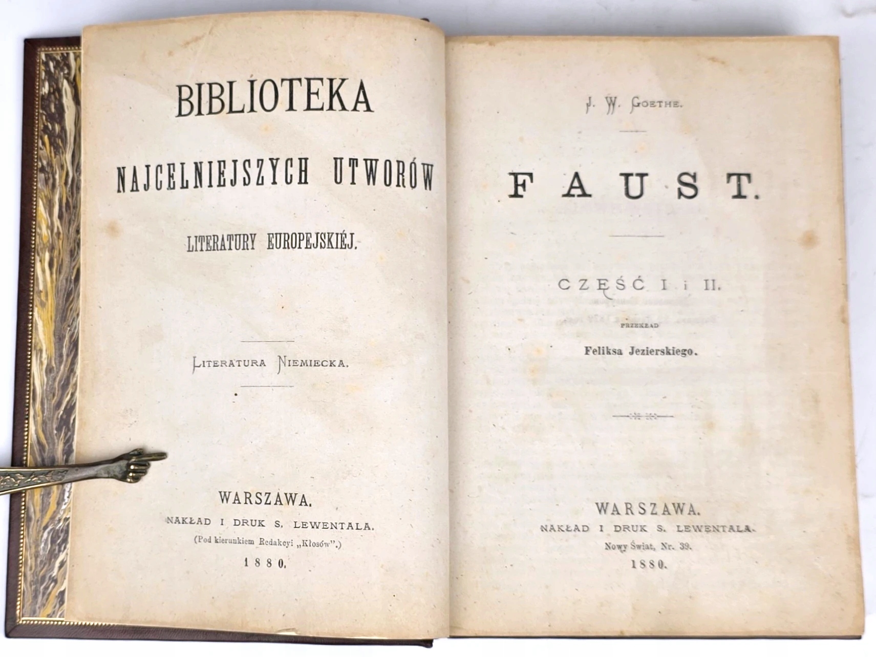 Варшава 1880; 1877,відредаговано та надруковано S. Lewentala, стор. XVI, 17-412, [4]; 98; у серії «Бібліотека найактуальніших творів європейської літератури: німецька література»; формат 14,5x20 см
