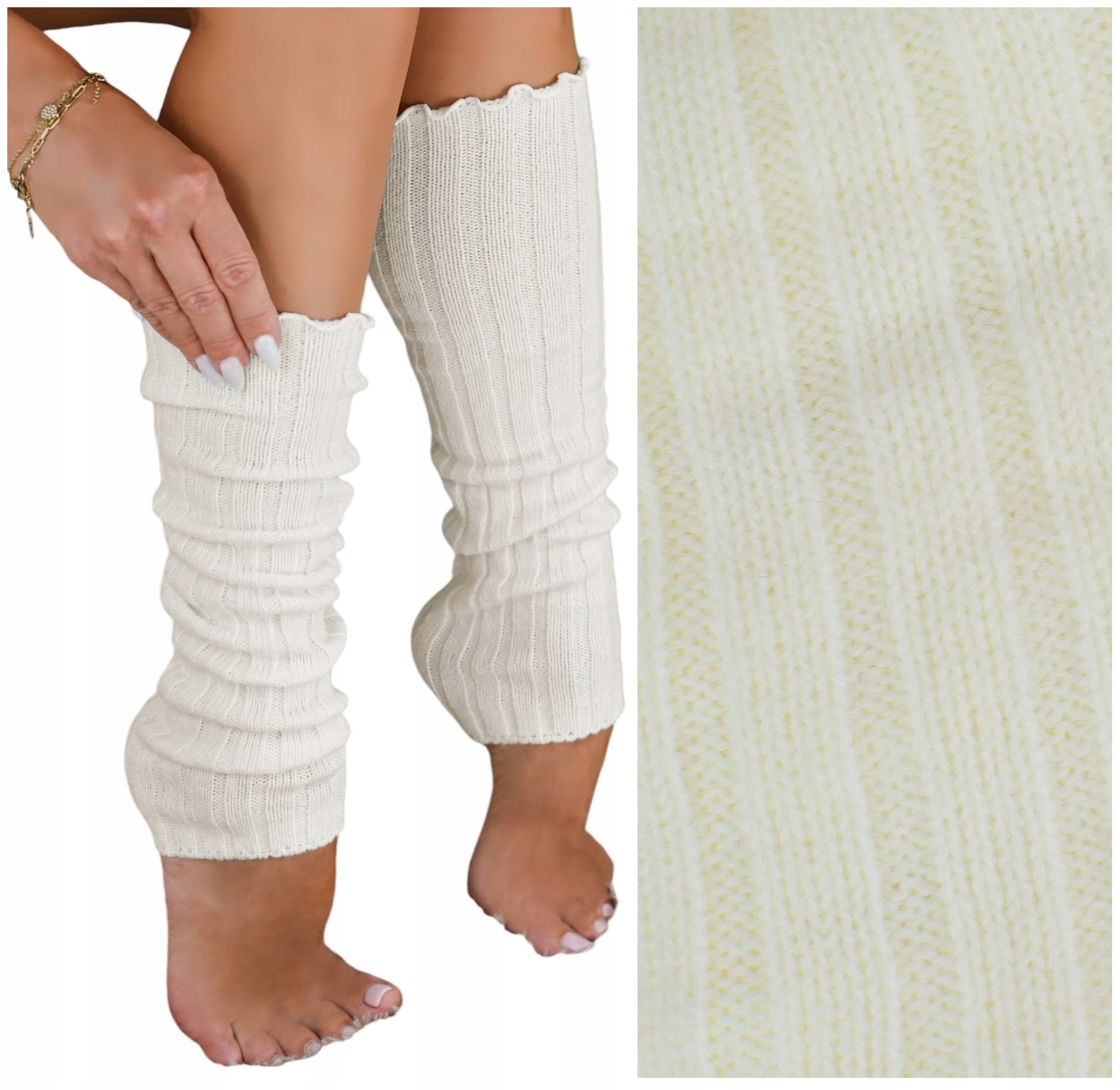 GETRY OCIEPLACZE NA NOGI DAMSKIE KREMOWE ECRU PRĄŻKOWANE ONE SIZE NOVITI