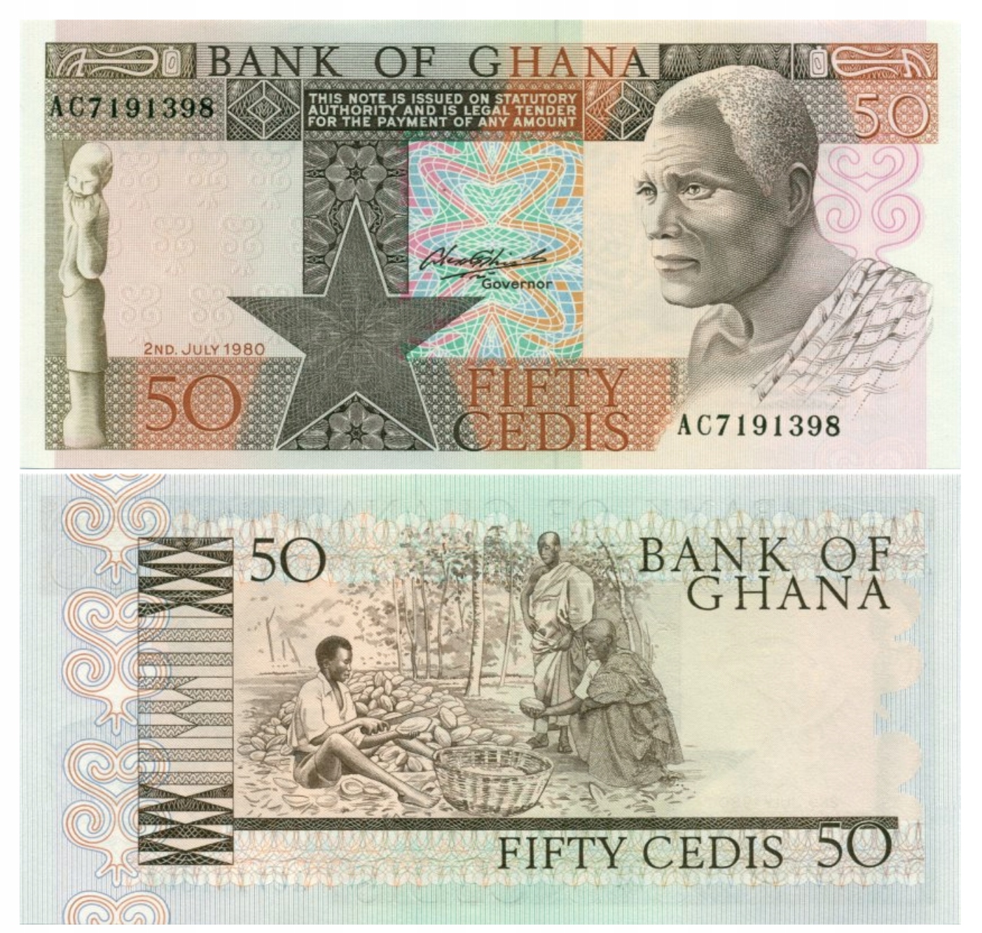 GHANA 50 CEDIS 1980 P-22b UNC, серійний номер банкноти може відрізнятися від зображеного на фото