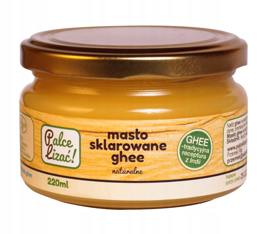 Лизайте уточнені пальці! Це 100% натуральний продукт, виготовлений відповідно до традиційного індійського рецепту з польського молока з корів Бісцаді. Він не містить консервантів, барвників, підсилювачів смаку та штучних загусників. Він завдячує своєму інтенсивному жовтому кольорі та послідовності процесу роз'яснення, що включає спеціальну термічну обробку. Виробник проводить його дуже ретельно протягом принаймні 7-8 годин, завдяки якому всі тверді частинки, шкідливі речовини та вода ретельно відокремлюються від чистого молочного жиру. Завдяки надзвичайно ретельній техніці виробництва, Butr Slearified Fingers Lick Lick! Він має багато корисних властивостей. Довгий процес роз'яснення усуває всі види домішок, що містяться в коров’ячому молоці, і захищає продукт від процесу окислення. Він характеризується високим вмістом насичених жирних кислот. Це не впливає на ліпідний профіль і не підвищує рівень холестерину в крові. Це легкозасвоюючий продукт і цінне джерело поживних речовин та багато інгредієнтів, що стосуються здоров’я, включаючи переважно вітаміни А, Д, Е і К та Масляна кислота. Завдяки початковій, тривалої термічної обробки, продукт позбавлений усіх бактерій та мікроорганізмів, що впливають на інноваційний процес. Це забезпечує надзвичайно довгий термін зберігання - облизуйте масло, щоб облизувати пальці! Він підтримує свіжість протягом багатьох місяців, навіть при кімнатній температурі.