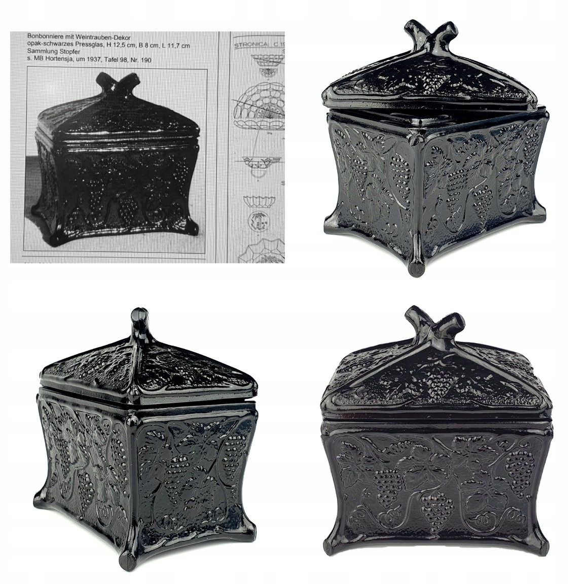 Чудове печиво з чорного гіалітового скла, пресоване в Huta Szkła Hortensja, каталожний номер з 1936 року: 130.