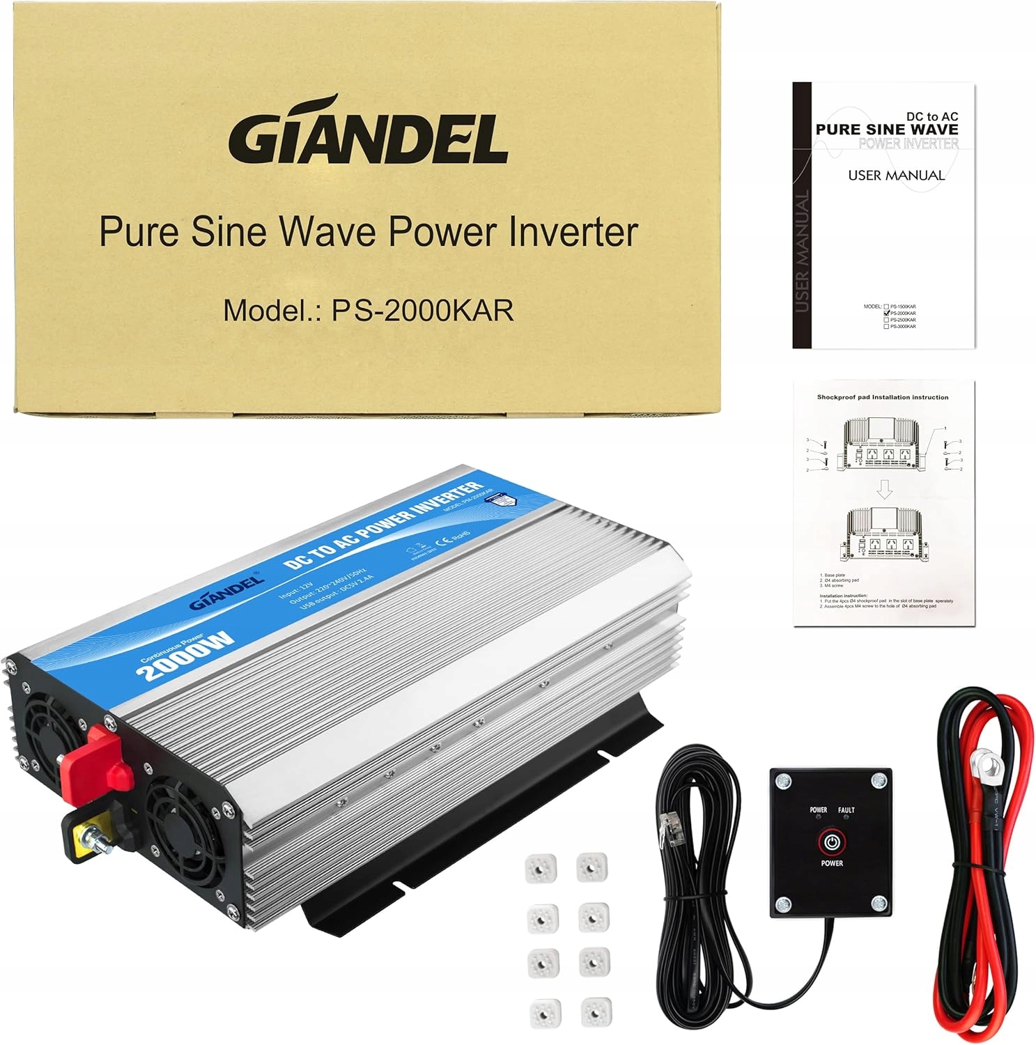 GIANDEL Синусоїдальний інвертор 12 В на 230 В, чиста синусоїда, 2000 Вт.