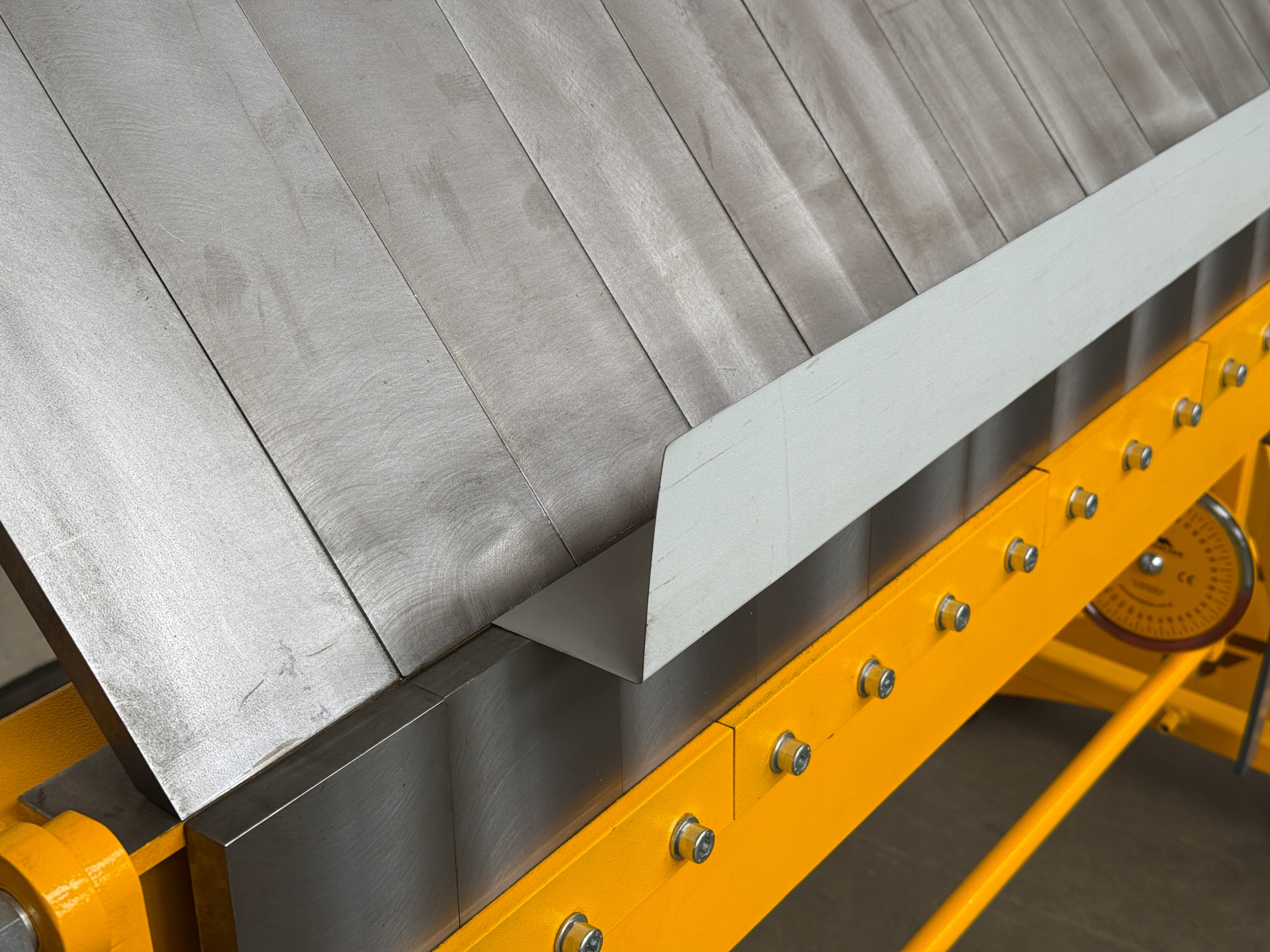- МАГНІТНА НИЖНЯ БАРКА – (Додаткове обладнання) - Магніти, встановлені на нижній балці, «утримують» простирадло в заданому положенні. Завдяки їм вузькі смуги листового металу не випадають з машини.
