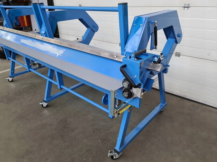 - ЗАДНІЙ СТІЛ, ОБЛАДНАНИЙ ОПОРАМИ (1000 мм) - дозволяє розміщувати металевий лист і вільно його переміщати. Його можна використовувати як місце для укладання листів металу. Оснащений шкалою, що дозволяє точно встановити гнутий і розрізаний листовий метал.
