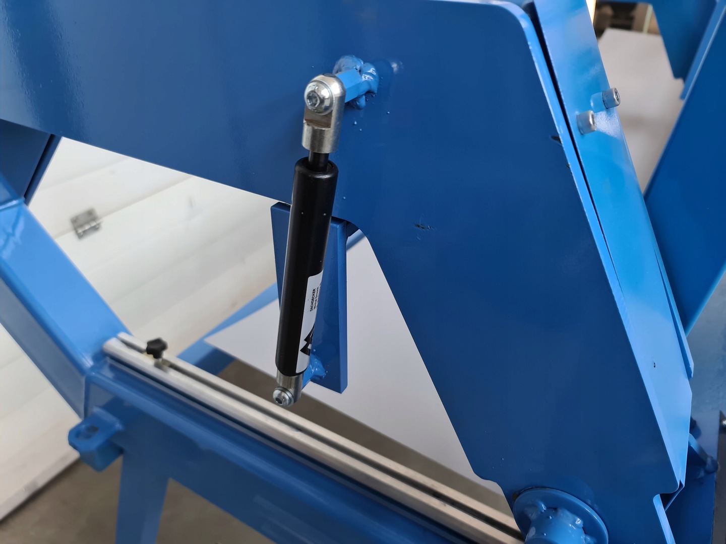 - ПЕРЕДНИЙ ОПІР - дозволяє встановлювати ширину різання з передньої частини згинального верстата. Конструкція упорів дозволяє повертати їх на 180° і повертати в колишнє положення. Дуже корисний для послідовного різання листового металу. Передні упори використовуються в повторюваних роботах. Вони багато разів зберігають однаковий розмір довжини розрізаного металевого листа. Швидкий і точний вимір розрізаного листа можна отримати за допомогою встановленої міри.