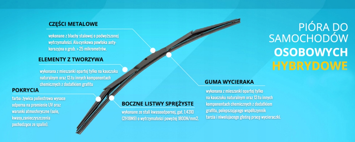 Гібридні щітки Motgum поєднують у собі найкращі характеристики стандартних і плоских щіток - чудову якість очищення та сучасний дизайн. Пластиковий корпус, що покриває міцну металеву конструкцію, значно покращує аеродинаміку ручки та значною мірою формує її естетику. Відповідна кількість опор у металевій конструкції, прихованій під кришкою, дозволяє ідеально розподілити силу тиску леза, незалежно від форми скла.