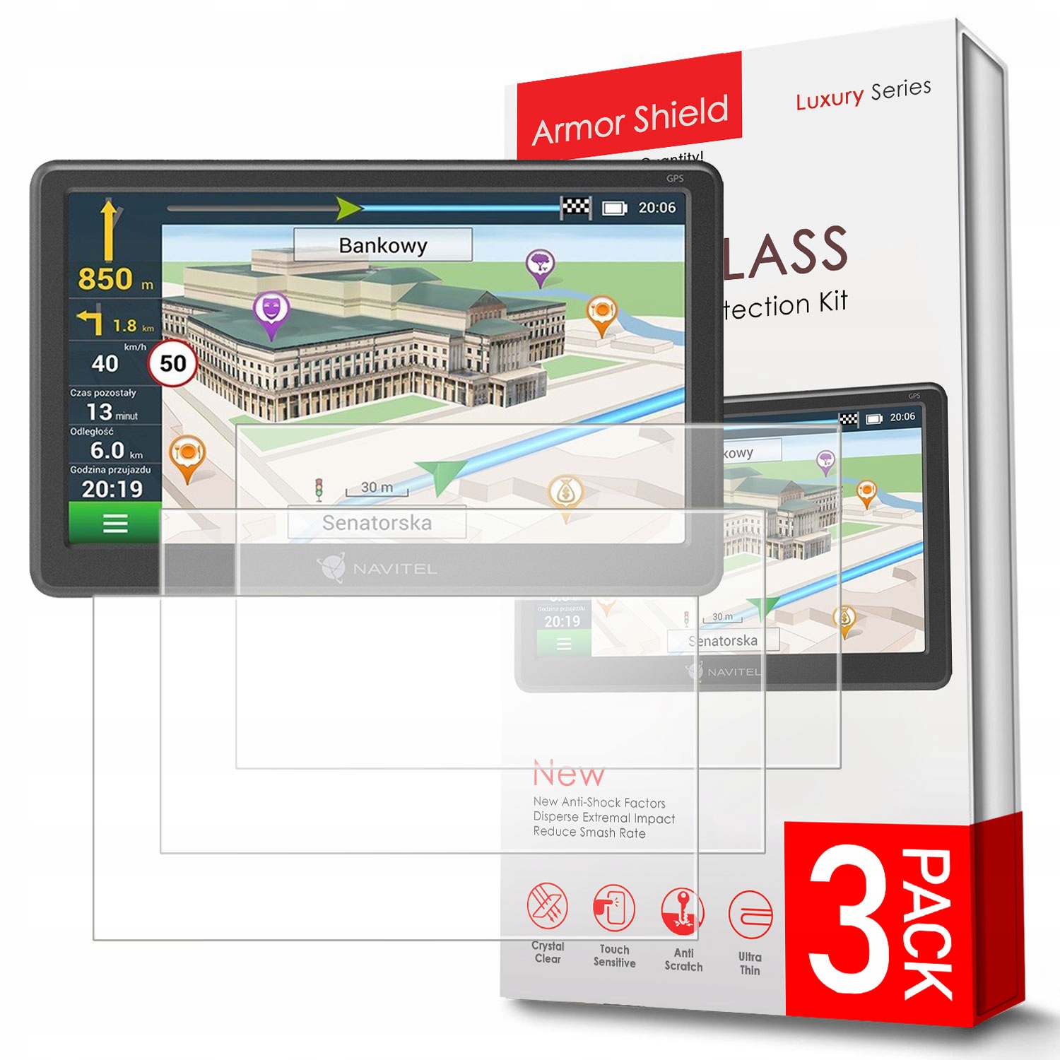 ГІБРИДНЕ СКЛО ДЛЯ NAVITEL E707 МАГНІТНЕ 3ШТ