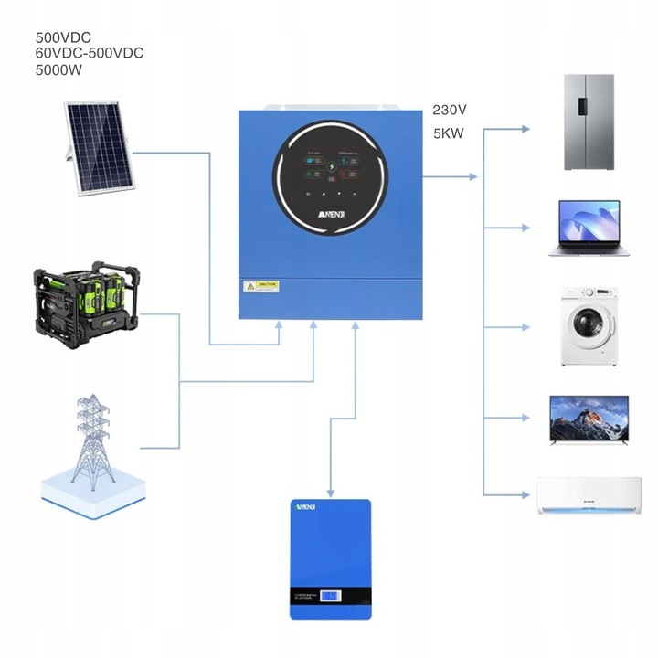 ✅ANENJI 5 кВт 48 В – гібридний інвертор із Wi-Fi і MPPT 100 A (подвійний вихід)