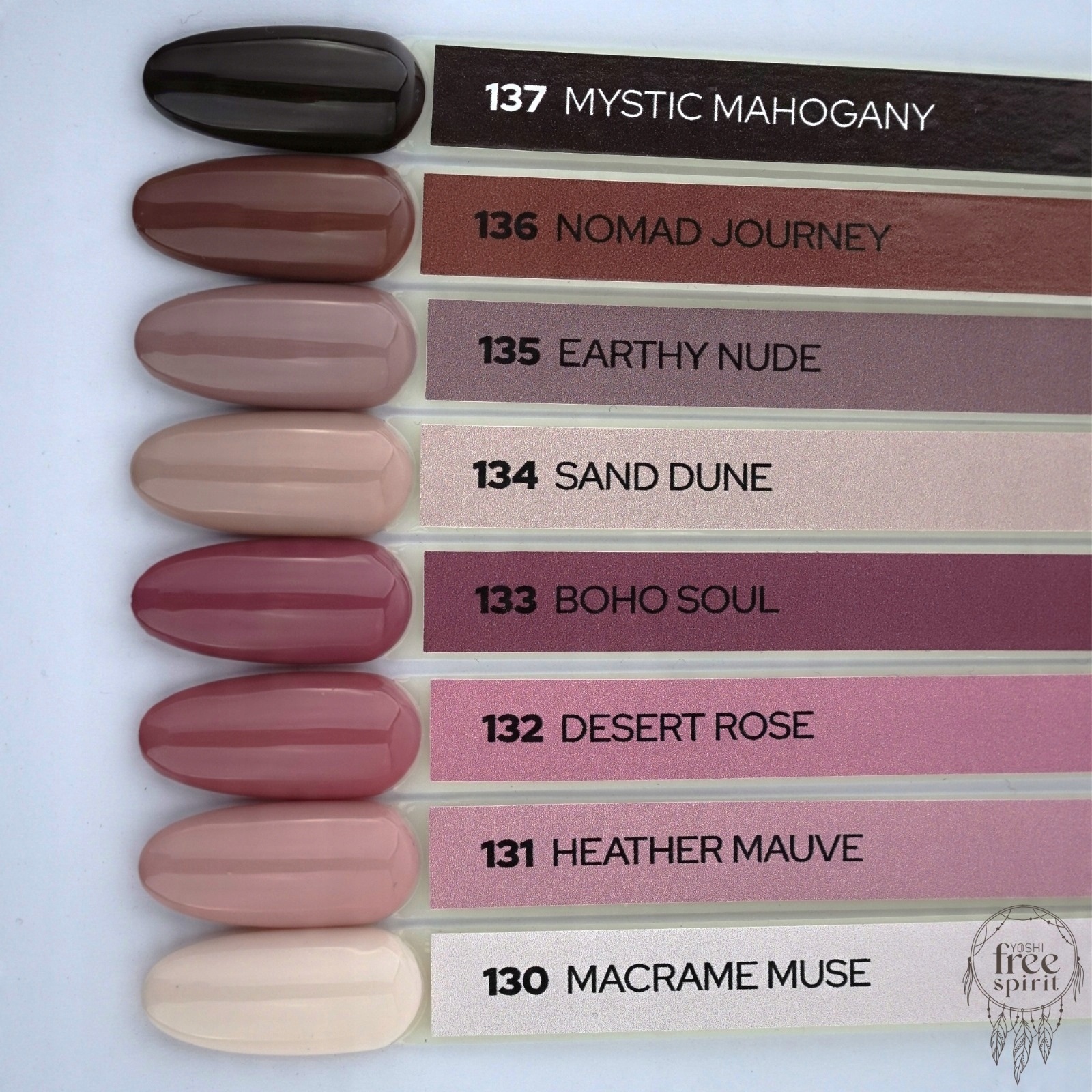 ❤ -лтагська колекція лаку для нігтів Вільний дух - палітра, натхненна природною красою та свободою стилю Бохо. Ця унікальна колекція поєднує відтінки оголеної, коричневої та рожевої, які відображають дух богемії, ідеально підходячи для кожної вільної душі, яка хоче висловити свою справжність та любов до природи.