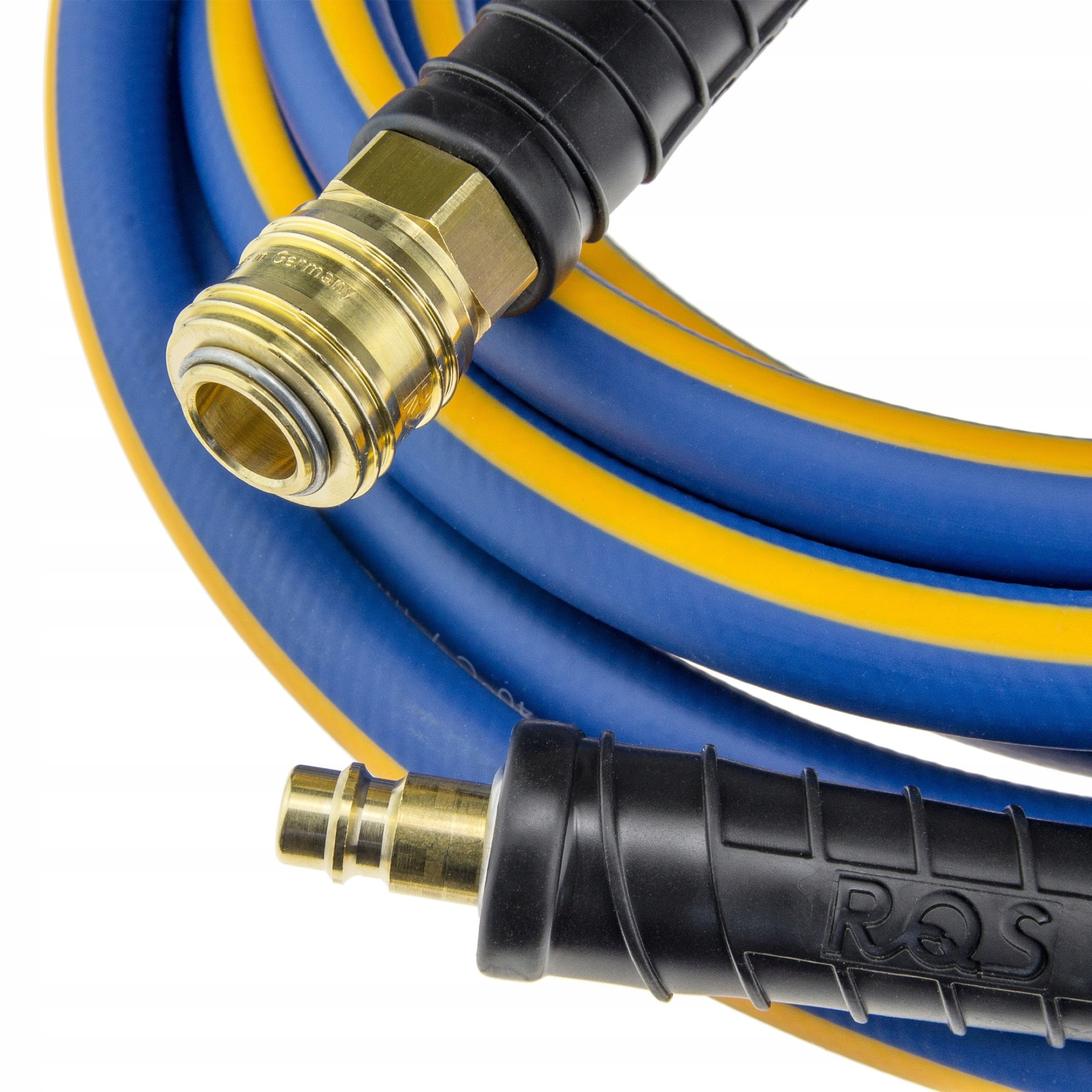 Кінці шланга ковані промисловими швидкоз'ємними з'єднувачами RQS типу 26, що відповідають стандарту EURO DN 7.2. Швидкі з'єднувачі виготовлені зі сталі та латуні. Сталеві пружини і загартовані стопорні штифти ідеально захищають роз'єм від випадкового від'єднання. Тверда гумова кришка запобігає перегинам і пошкодженню роз'єму. Ефективну герметичність з'єднання забезпечують гумові ущільнювачі NBR і точна підгонка елементів.