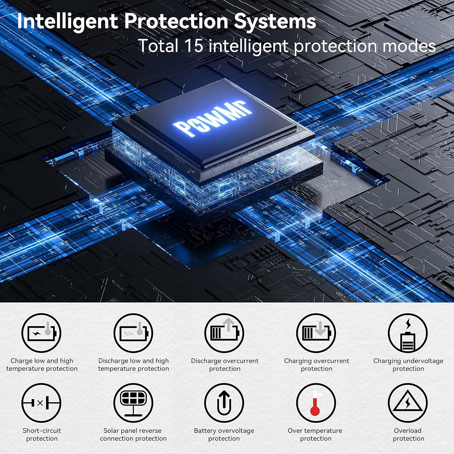 - Багатофункціональний сонячний інвертор: сонячний інвертор PowMr 5500 Вт 48 В постійного струму на 220 В/230 В змінного струму з РК-дисплеєм, вбудованим контролером сонячного заряду 80 A MPPT. Це багатофункціональний інвертор/зарядний пристрій, який поєднує в собі функції інвертора, сонячного зарядного пристрою та зарядного пристрою для акумулятора та використовується для живлення/генератора/сонячної енергії