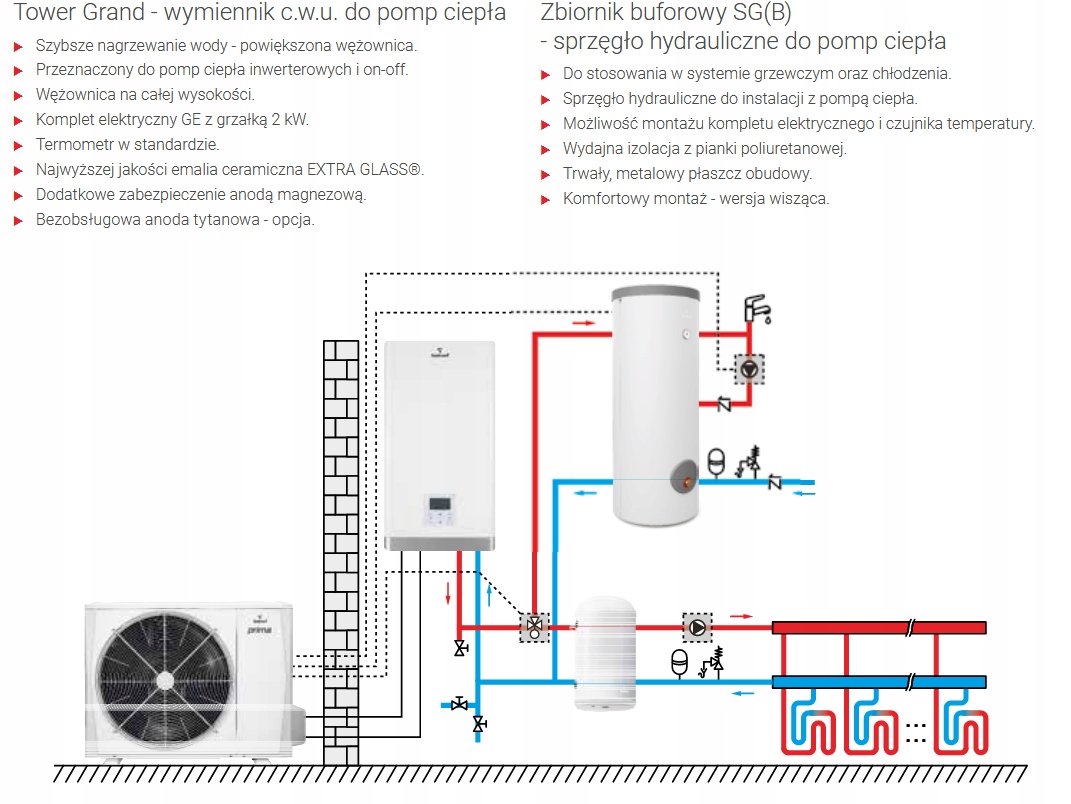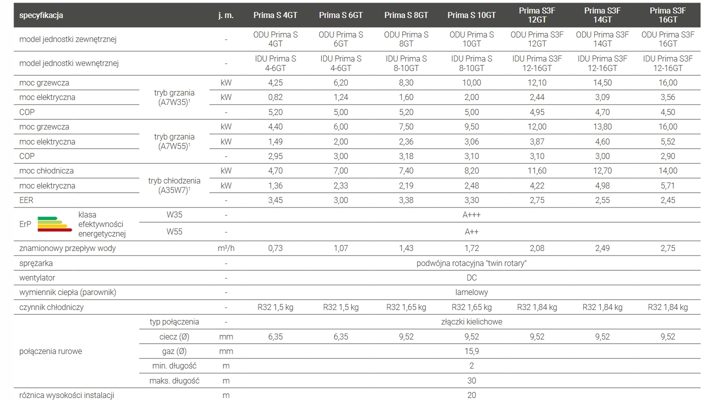 Нагрівальний комплект PRIMA S 12GT G300 використовує відновлювану енергію для комплексного обслуговування будівлі: опалення, охолодження та підігріву води для побутових потреб. У комплект входить: повітряний тепловий насос Prima S 12GT (Split), теплообмінник ГВП. SGW(S) Tower Grand 300, підвісний буфер (гідравлічна муфта) SG(B) 60, електричний комплект GE з нагрівачем 2 кВт 230 В - K6/4" і триходовим клапаном з приводом для функції ГВП. набір має багато переваг, серед яких: : робота насоса при температурі до -25°C, температура на виході теплового насоса до 65°C, екологічний холодоагент R32, 2 режими безшумної роботи, онлайн-контроль через додаток, швидке нагрівання ГВП - режим TURBO і збільшений змійовик площею 2,7 м2 в теплообміннику SGW(S) Tower Grand 300, ефективна пінополіуретанова ізоляція в буфері і теплообміннику, субсидії в програмі Чисте повітря завдяки клас енергоспоживання A++ (A7W55) та сертифікат Keymark Живлення теплового насоса 400В.