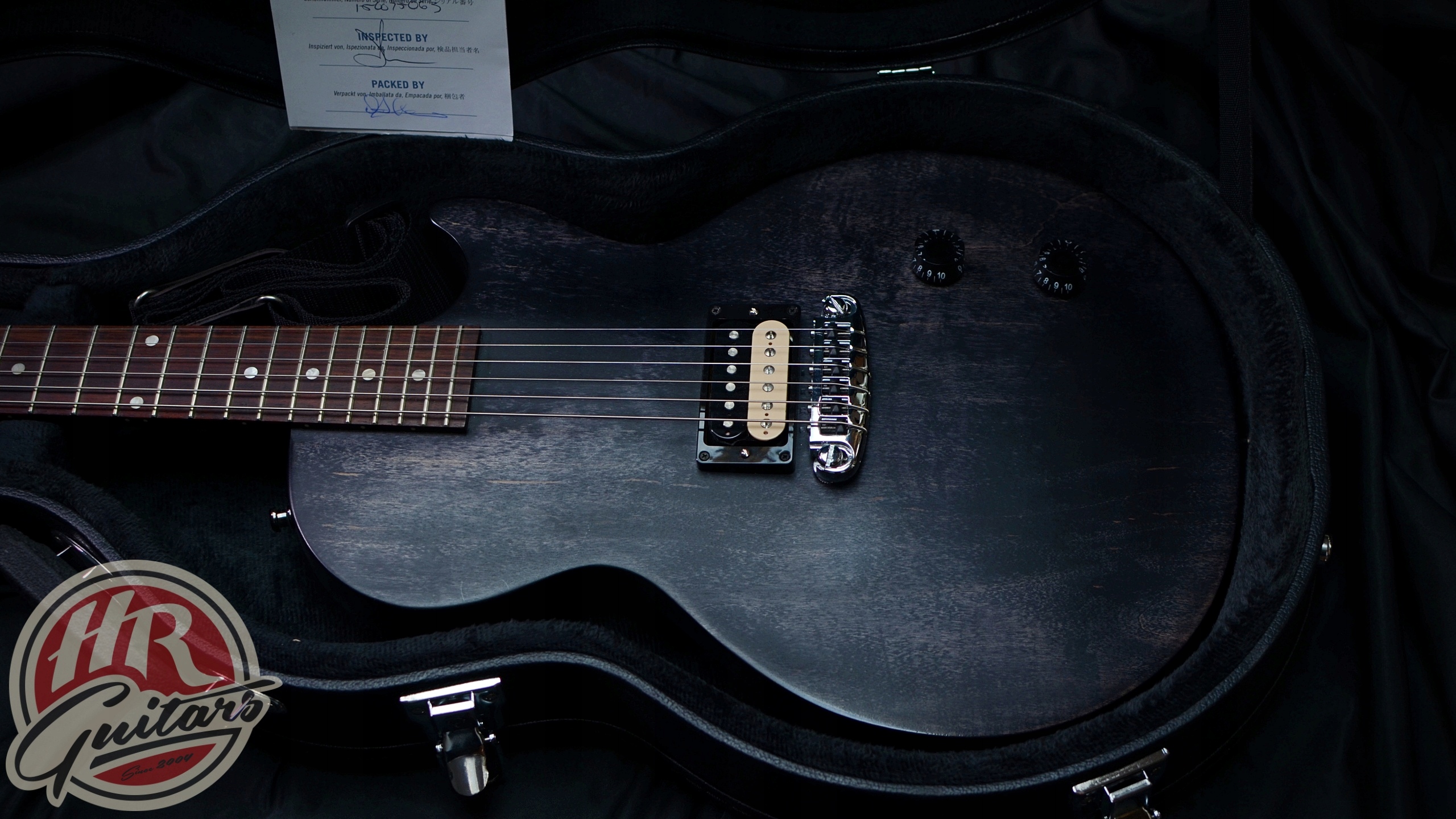 Gibson Les Paul CM, виробництво США, Satin Ebony Color, 2015. Держава гітари дуже приємний. Тіло виготовлене з червоного дерева з кленовим накладкою, Гриффін відображається на паличантній дошці. Пікапи - 61 зебра. Оригінальна система автоматичних очеретів була замінена заблокованими клавішами Gotoh, і оригінальний міст також змінений. У наборі є випадок. Гітара звучить і виглядає чудово. Я щиро рекомендую і запрошую вас на тести.